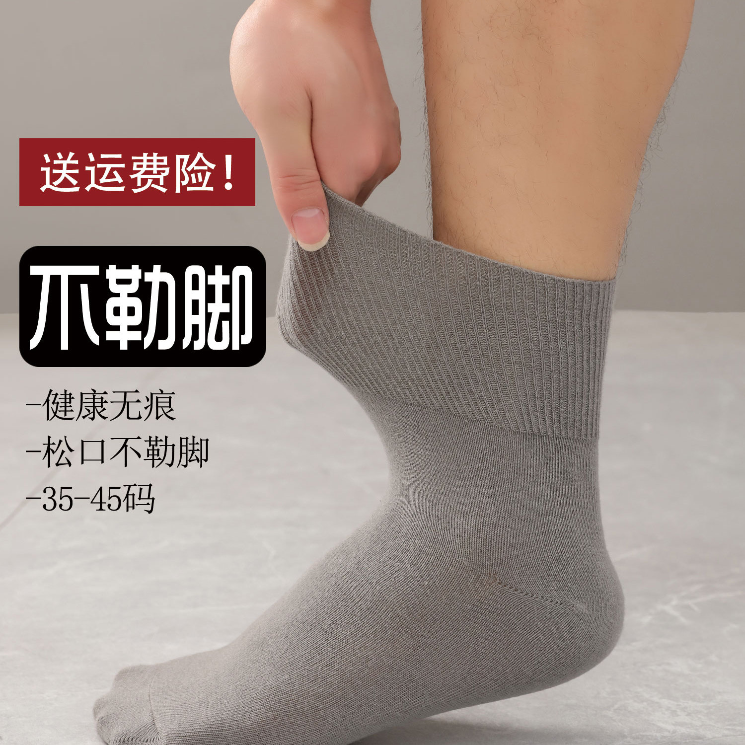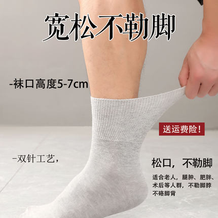 男士纯棉松口中筒袜老年老人松口不勒脚男袜加肥加大胖肿大女士袜