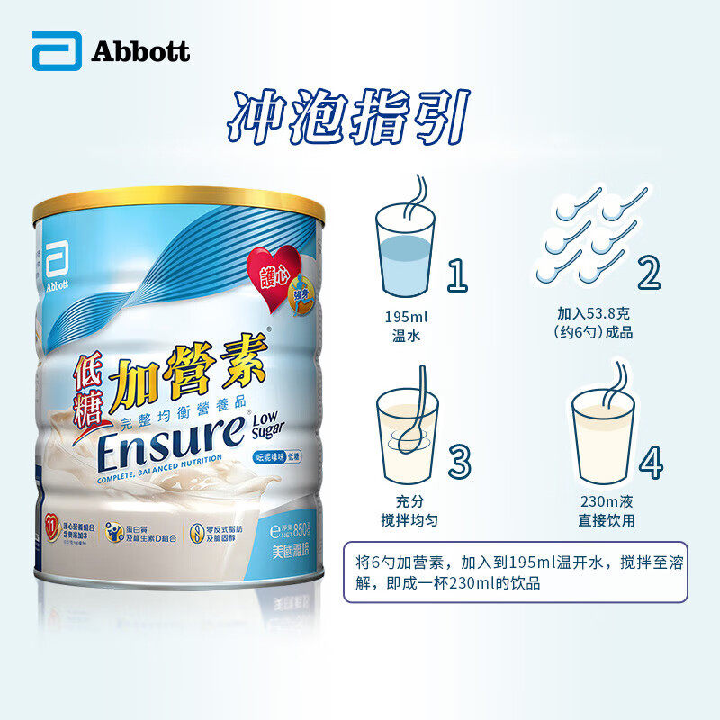 港版雅培Abbott低糖金装加营素中老年成人营养奶粉香草味850g*4罐