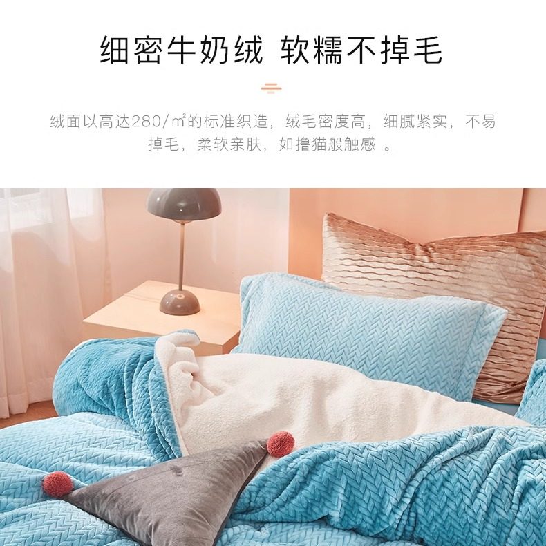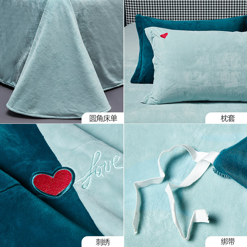 梦洁秋冬款珊瑚绒保暖简约四件套秋冬加厚加绒珊瑚绒床单牛奶绒被