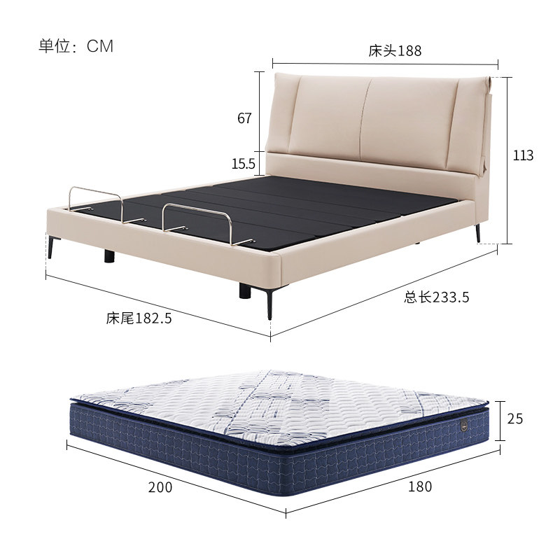 顾家家居头层牛皮双人主卧电动智能床带加厚乳胶床垫套餐1089