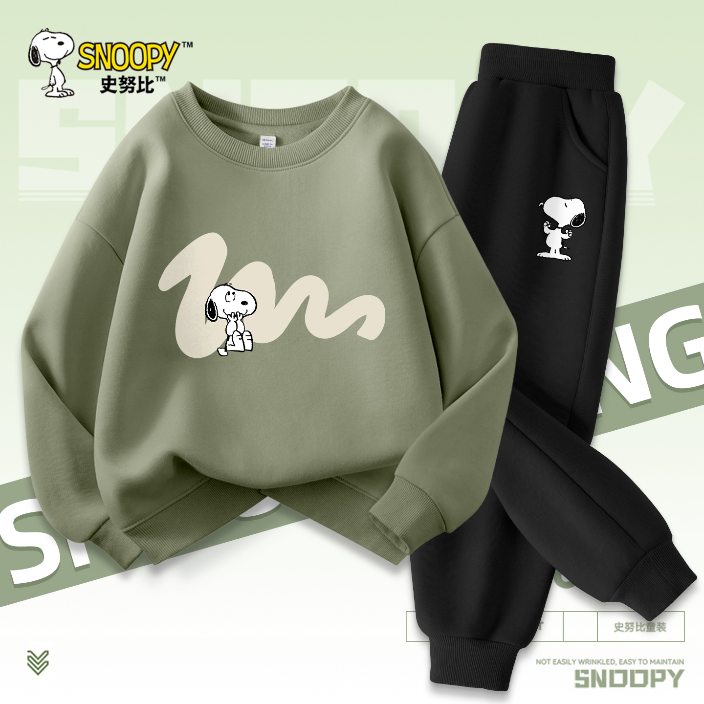史努比男童秋套装2025新款男大童休闲圆领卫衣儿童秋季帅气两件套