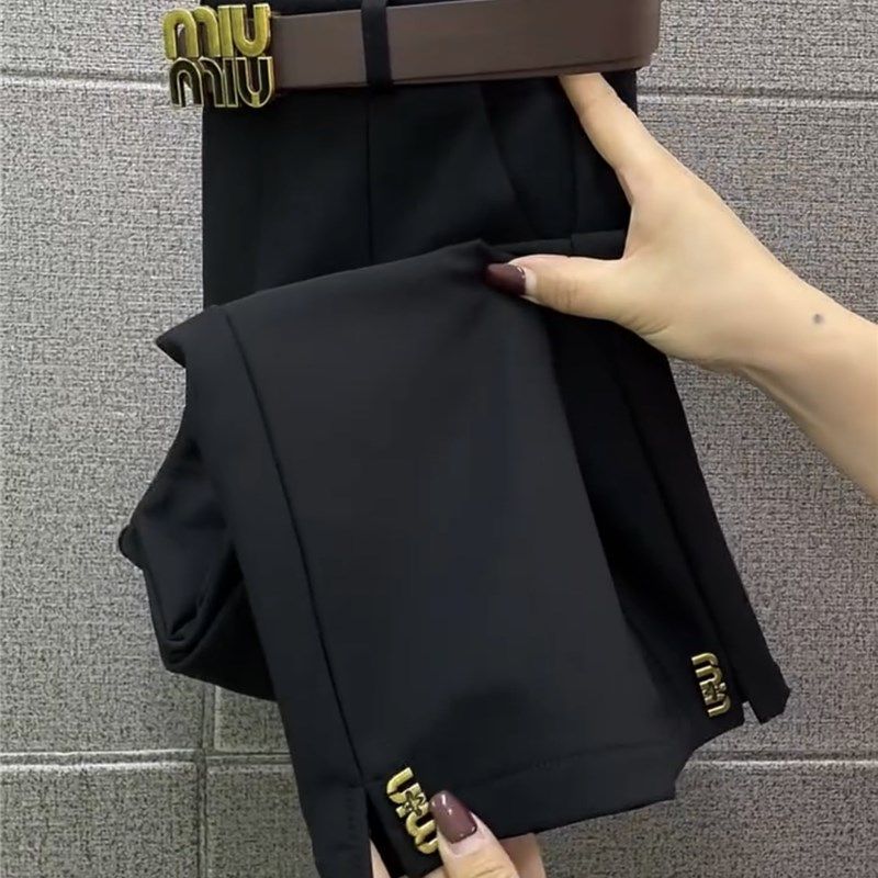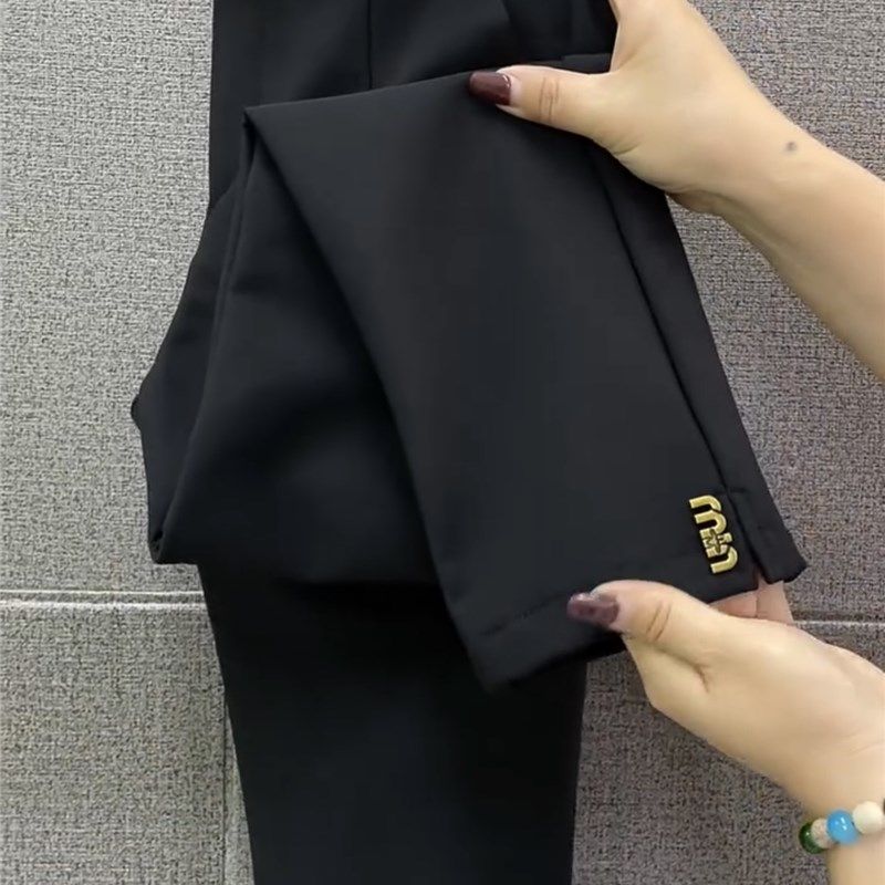 欧货开叉烟管裤女小西裤2024秋季新款韩版显瘦直筒裤百搭九分裤潮