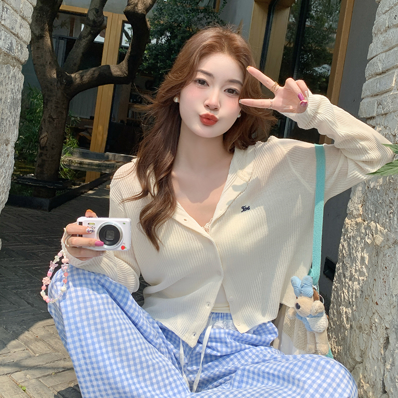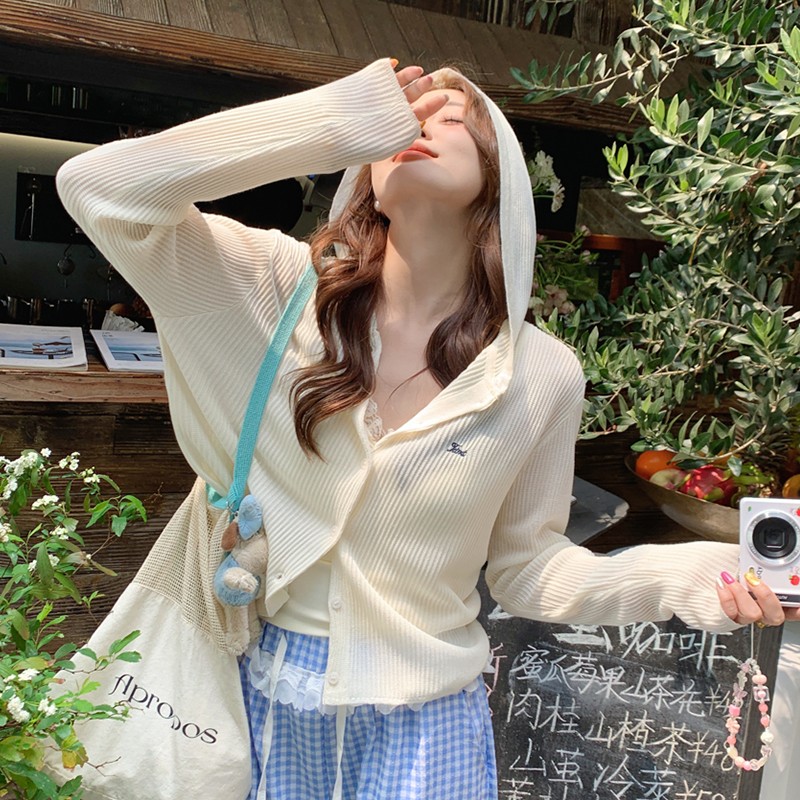 拉夏贝尔白色连帽针织开衫女外搭2025秋季新款小香风薄款外套上衣