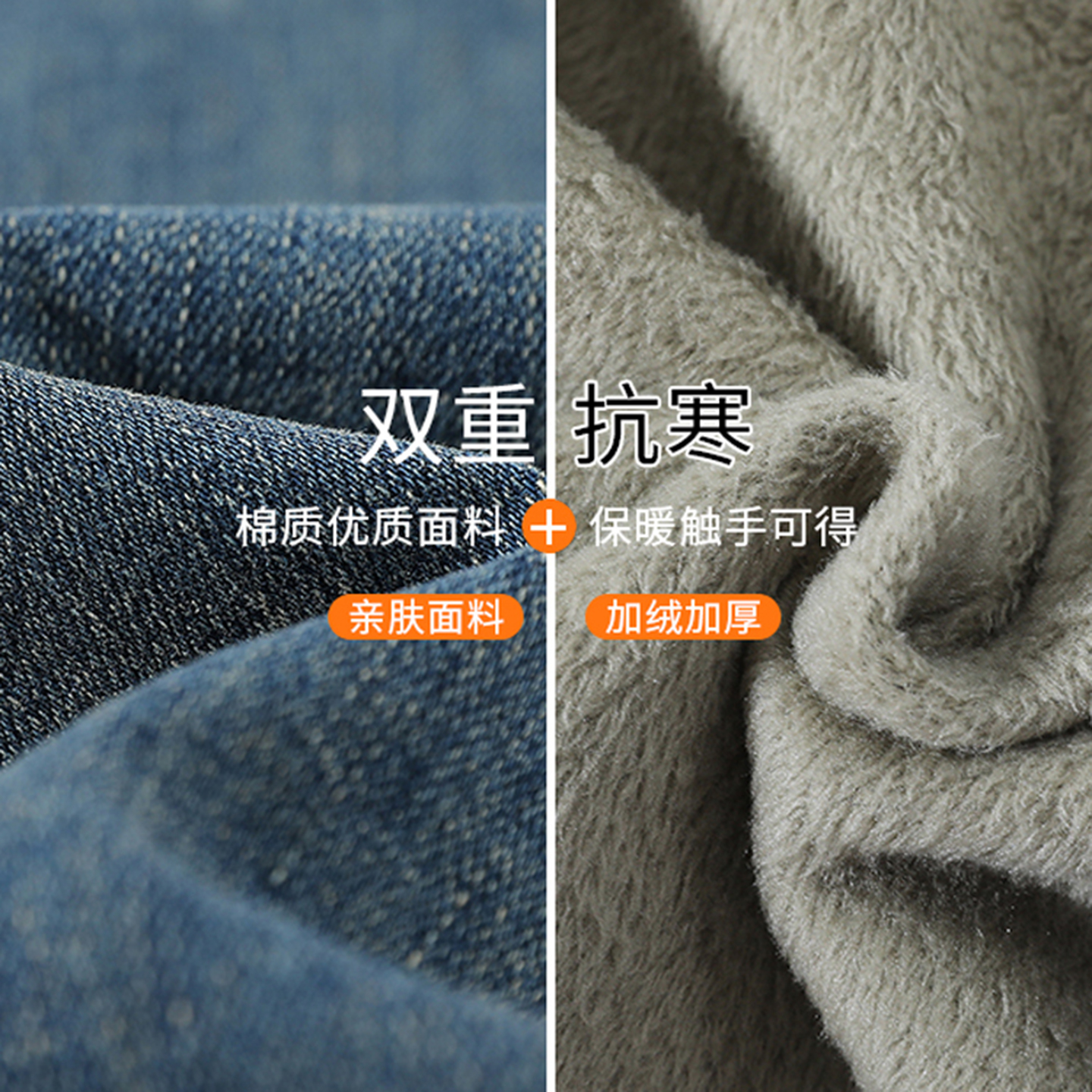 美式浅蓝色高腰小脚牛仔裤女2025秋冬新款弹力修身加绒加厚铅笔裤
