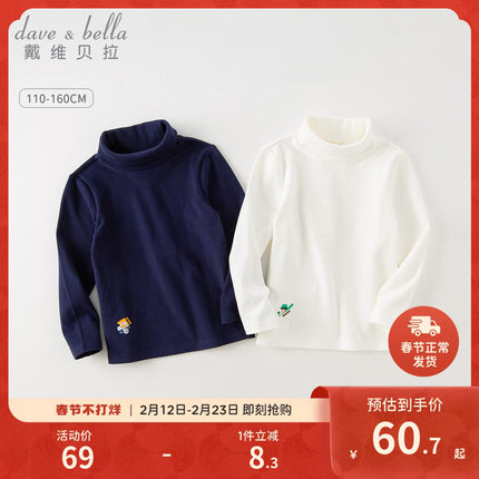 戴维贝拉儿童高领打底衫男童内搭T恤男孩宝宝秋衣女童秋冬打底衣
