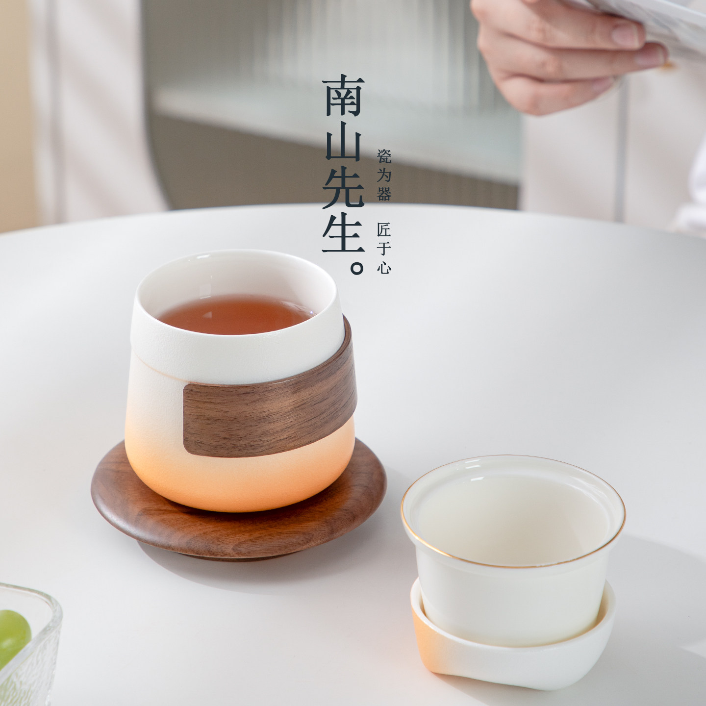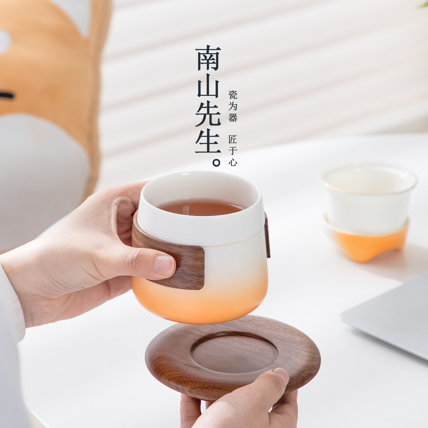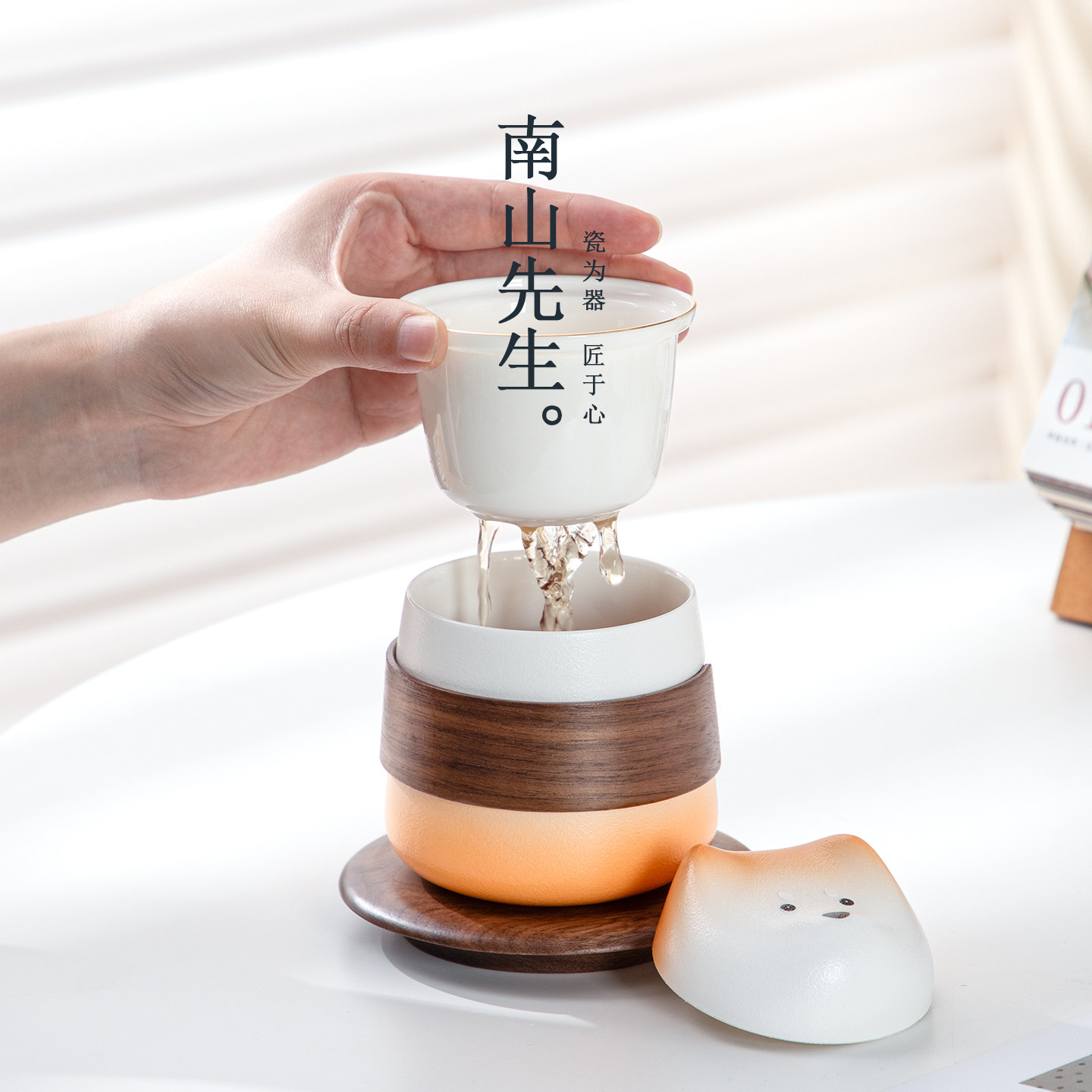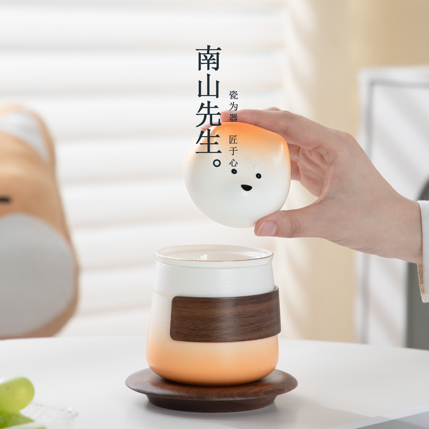 南山先生 柴圆滚滚随手杯陶瓷茶杯茶水分离杯子可爱便携水杯送礼