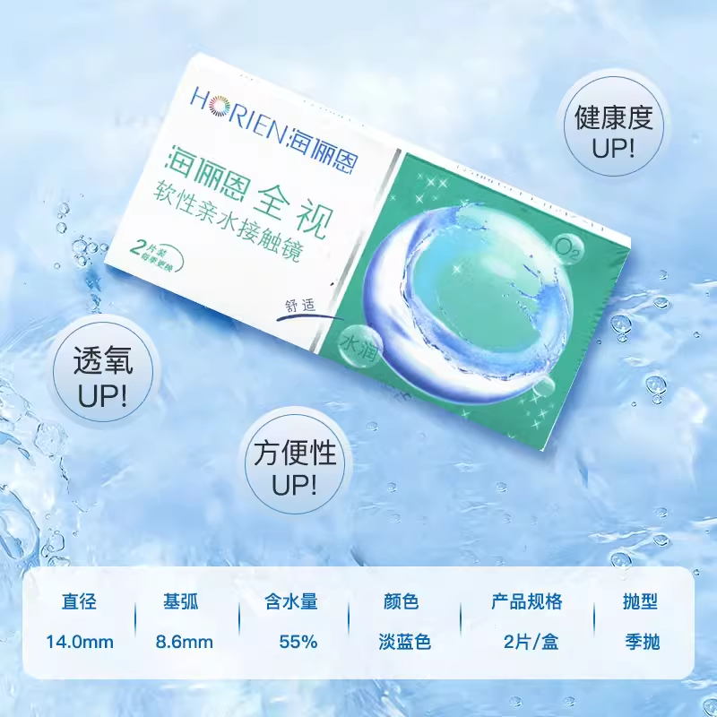 海俪恩隐形眼镜季抛海俪恩全视季抛官方旗舰店正品透明近视2片装