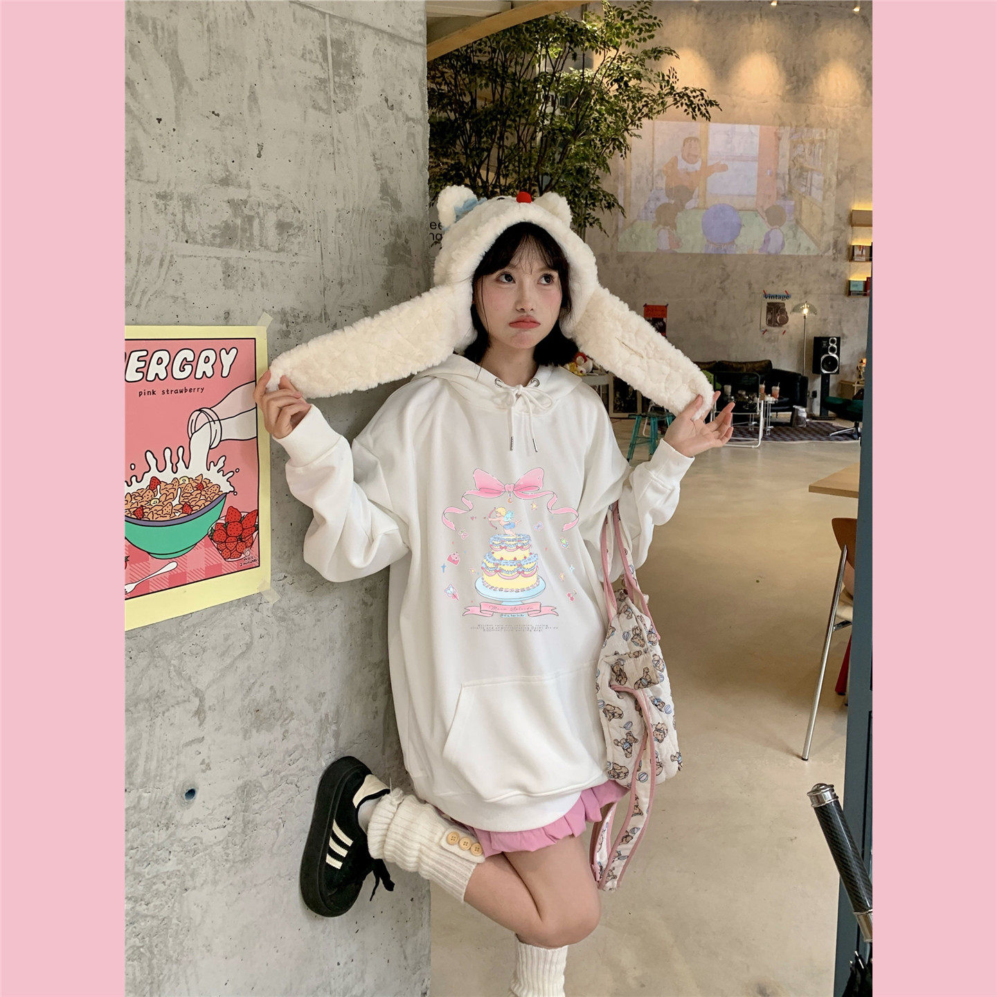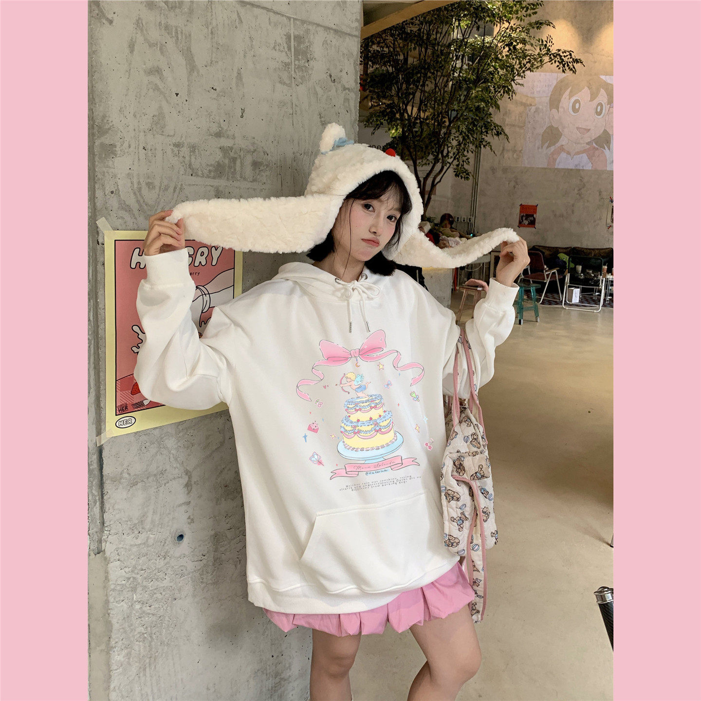 少女感蝴蝶结蛋糕连帽卫衣