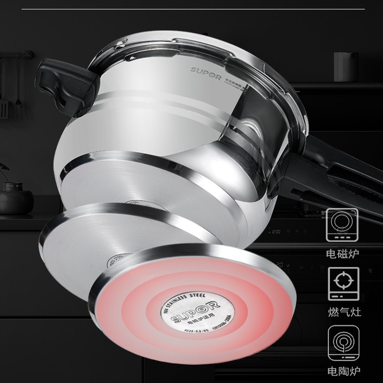 苏泊尔高压锅304食品级不锈钢加厚防爆压力锅YS24ED燃气电磁通用