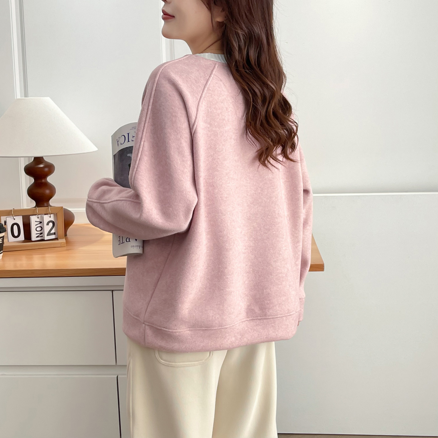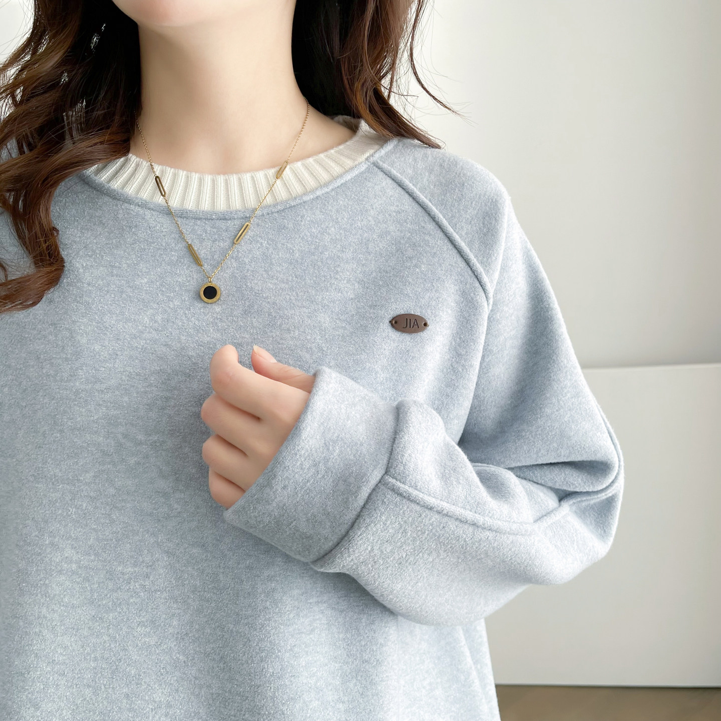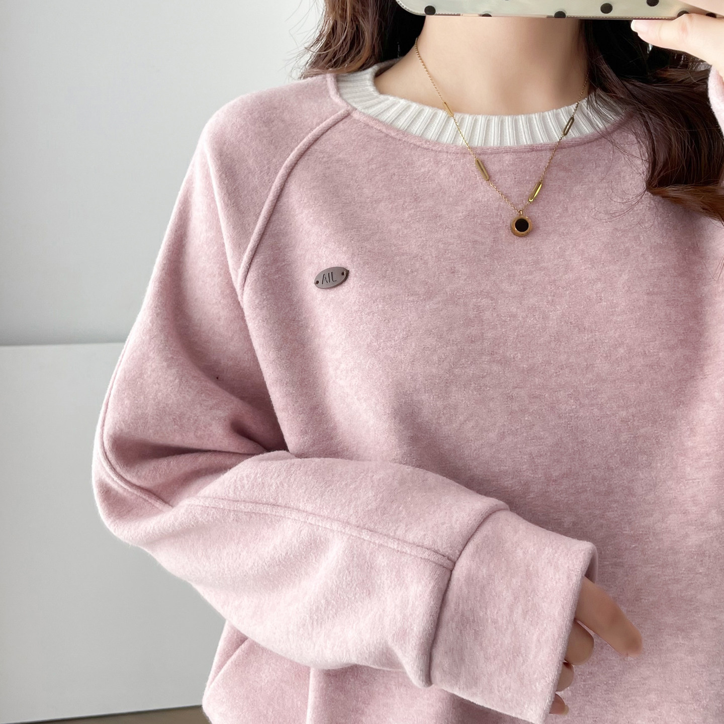 加绒卫衣女大码宽松2025年秋冬新款胖mm200斤时尚拼接圆领套头衫