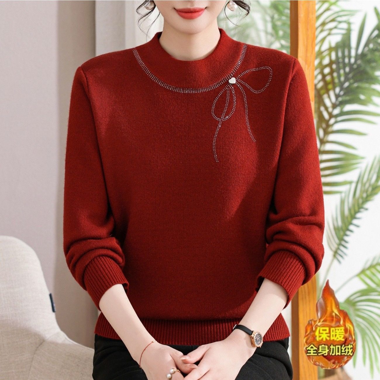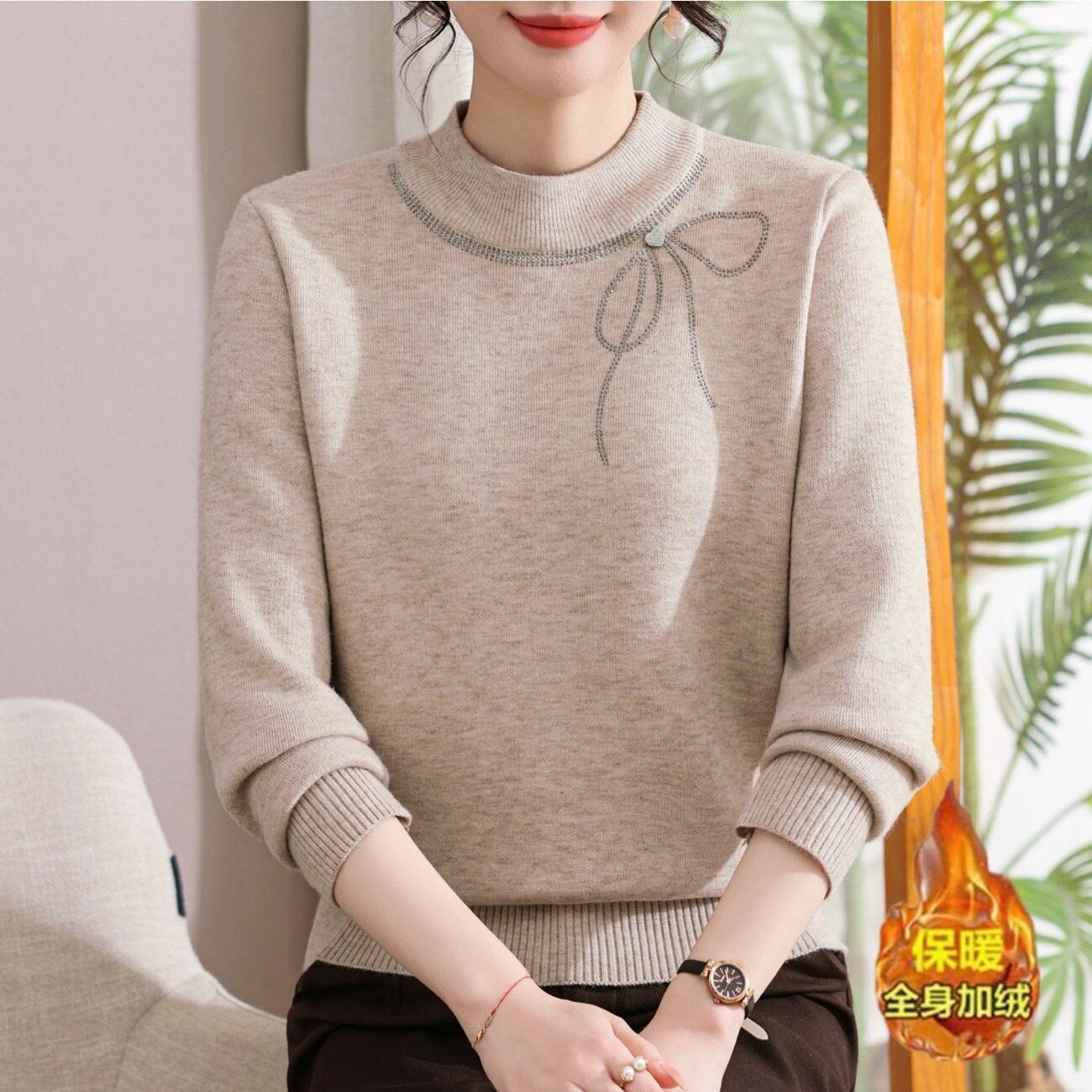 【126】冬季妈妈装加绒毛衣加厚女士针织衫一体绒保暖上衣打底衫