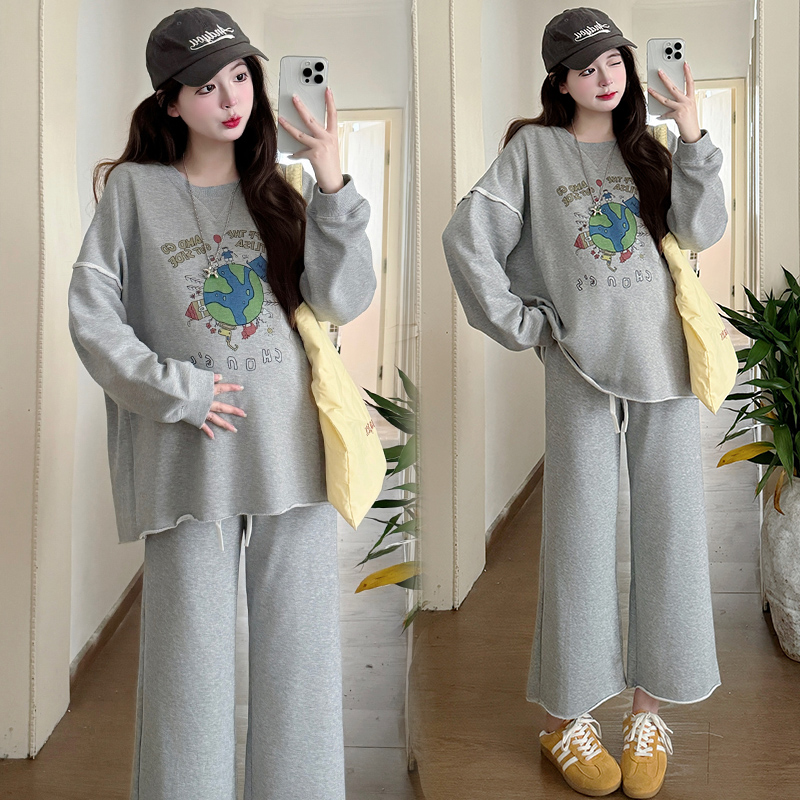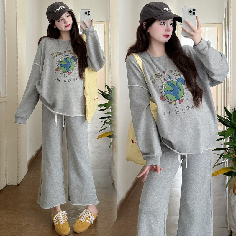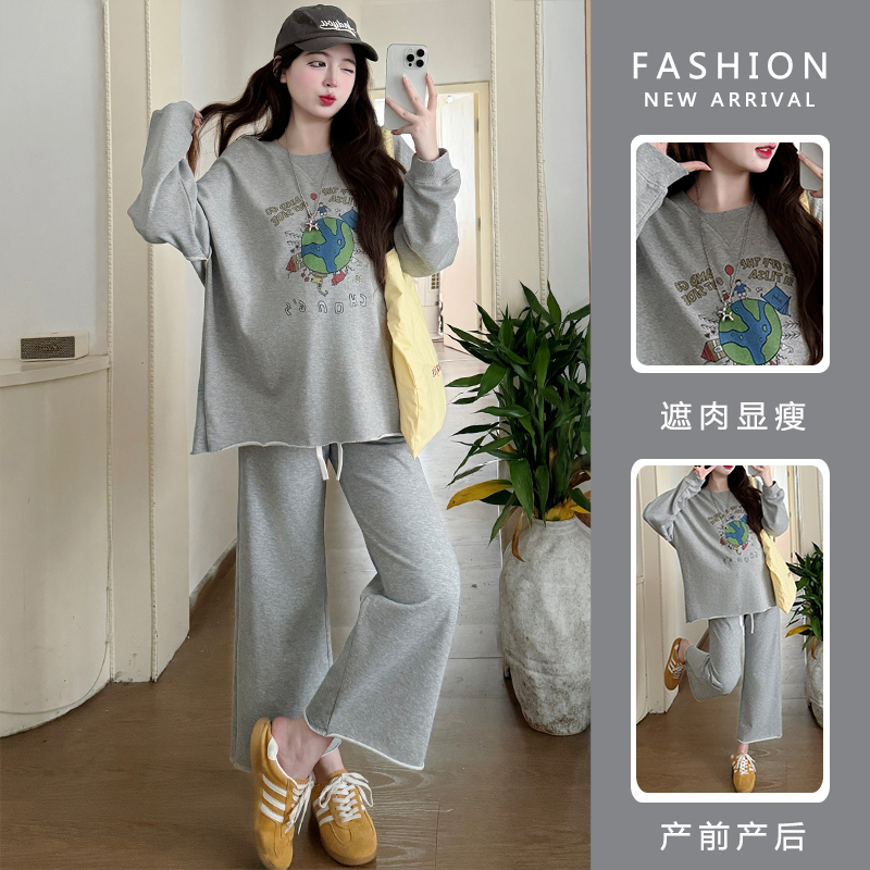 ~2025秋冬懒人套装韩版时尚宽松印花卫衣+阔腿裤两件套