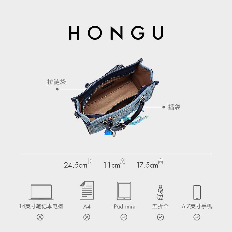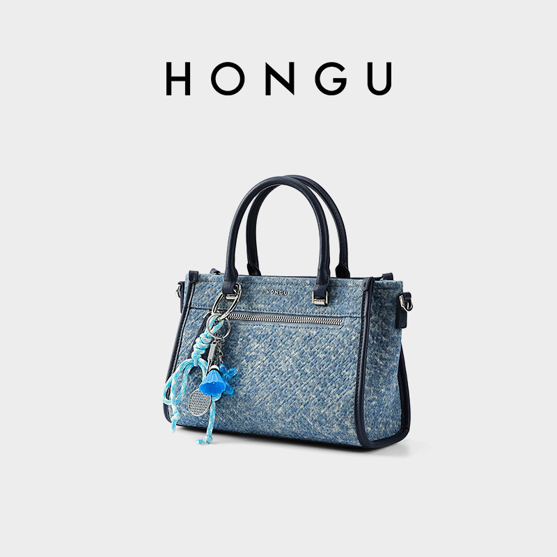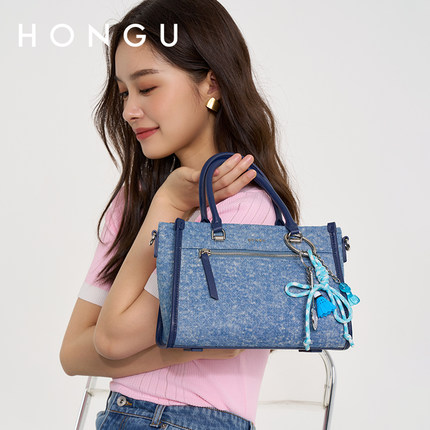 红谷女士包包牛仔拼接小众时尚单肩斜挎包手提包