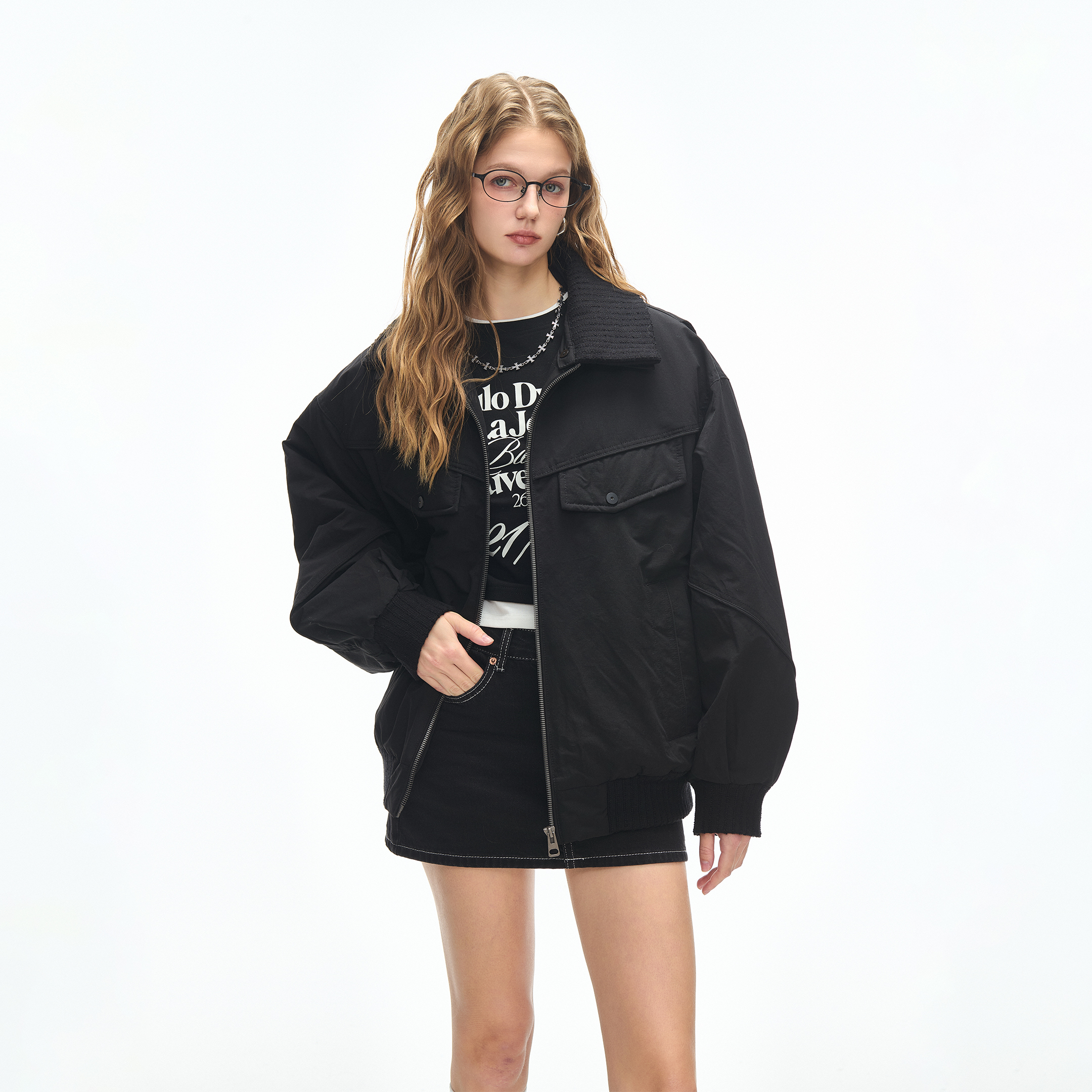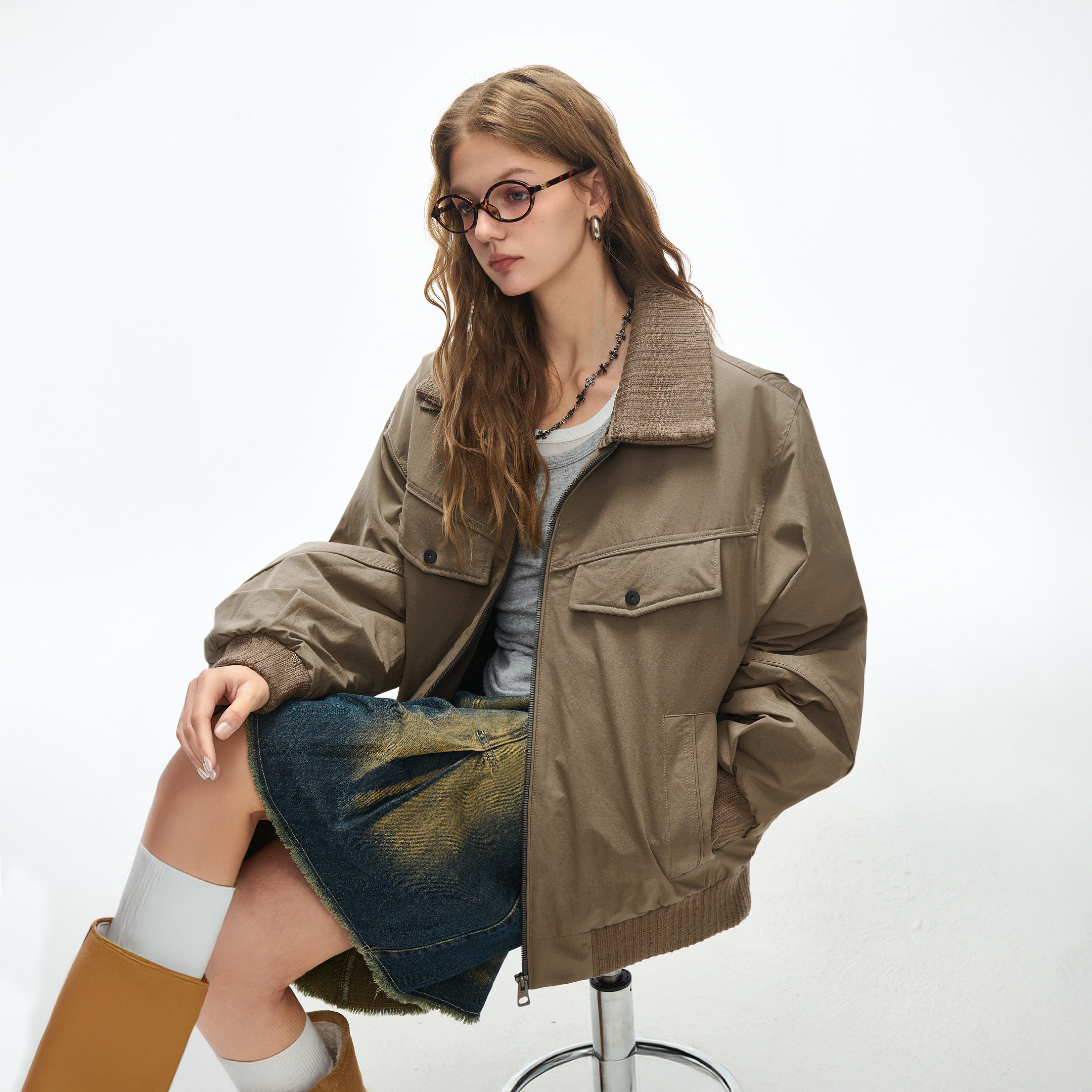 美式复古短款翻领夹克棉服女冬季新款情侣款棉衣工装休闲运动上衣
