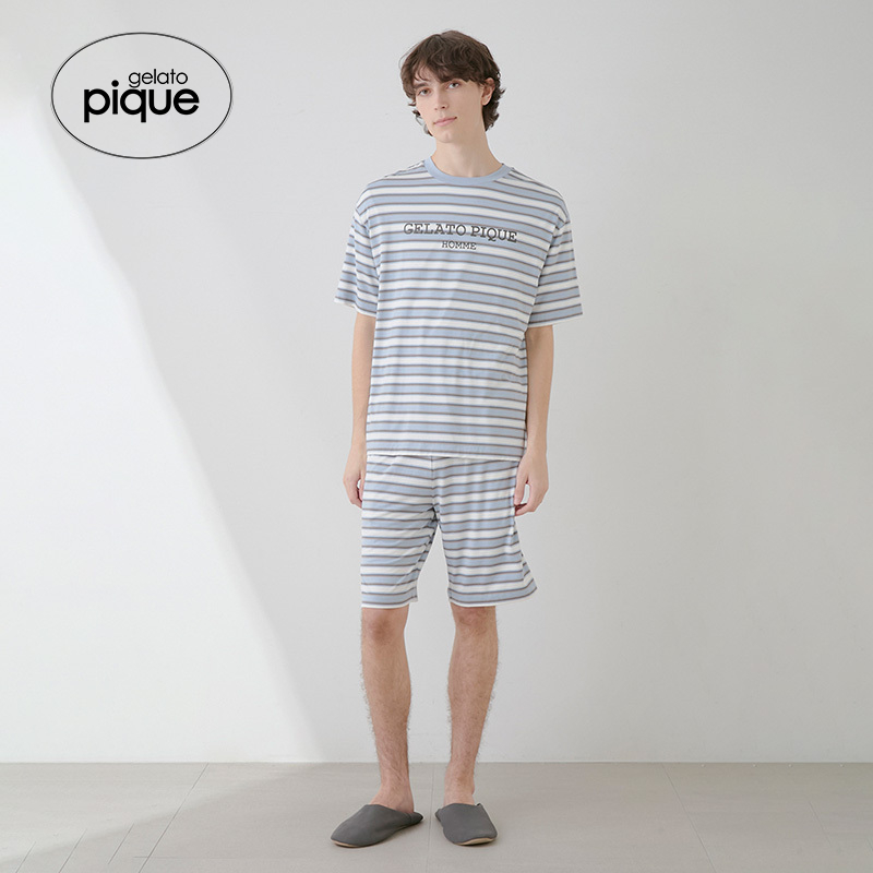 gelato pique25春夏新品男女同款睡衣条纹字母短袖T恤PHCT251965
