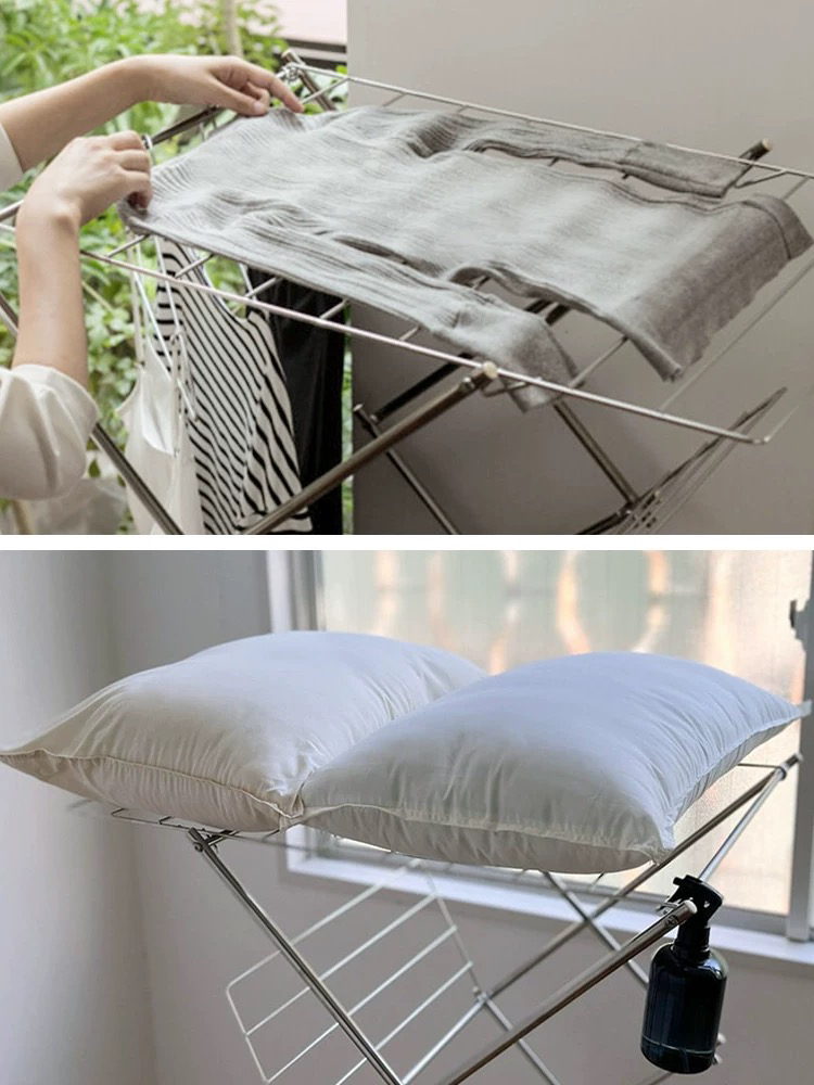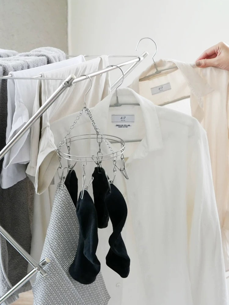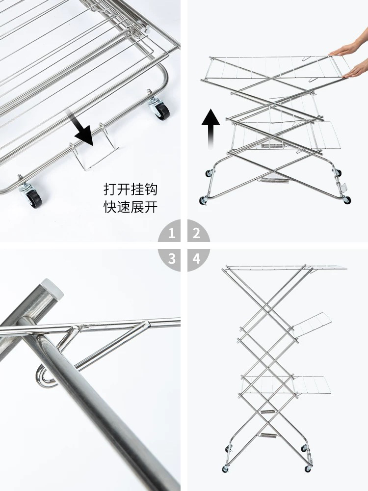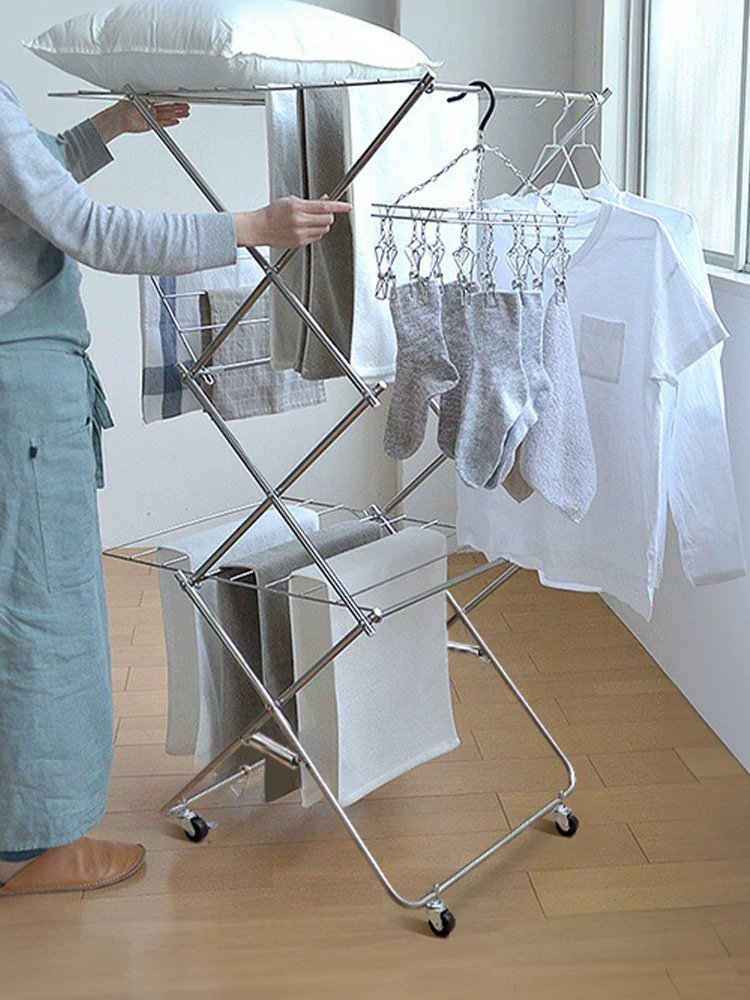霜山折叠晾晒架三层落地式晒衣架不锈钢室内阳台移动凉衣杆挂衣架