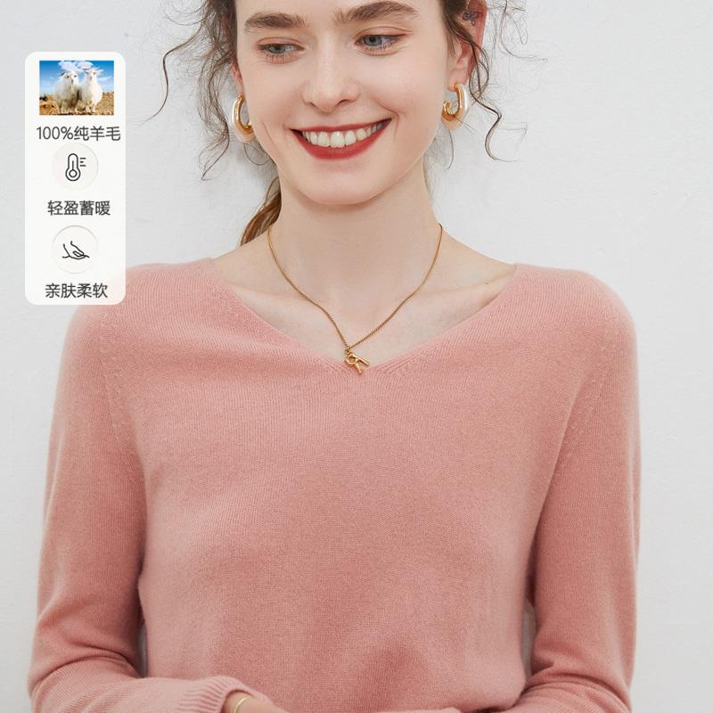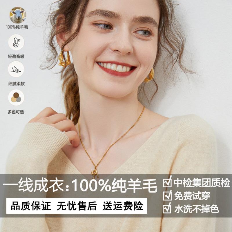 秋冬新款一线成衣V领100纯羊毛衫女套头显瘦厚毛衣针织打底羊绒衫