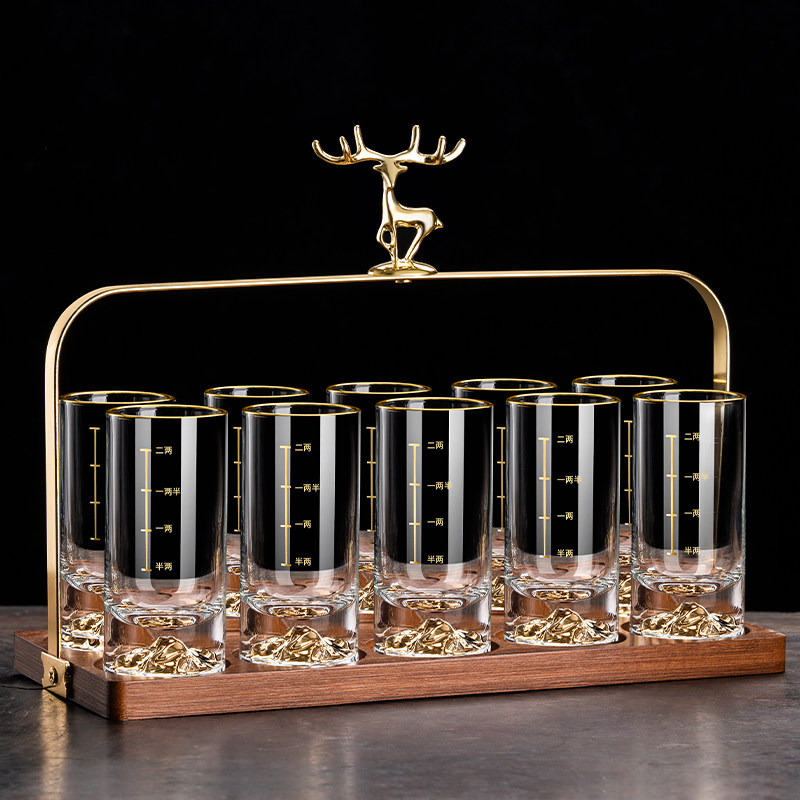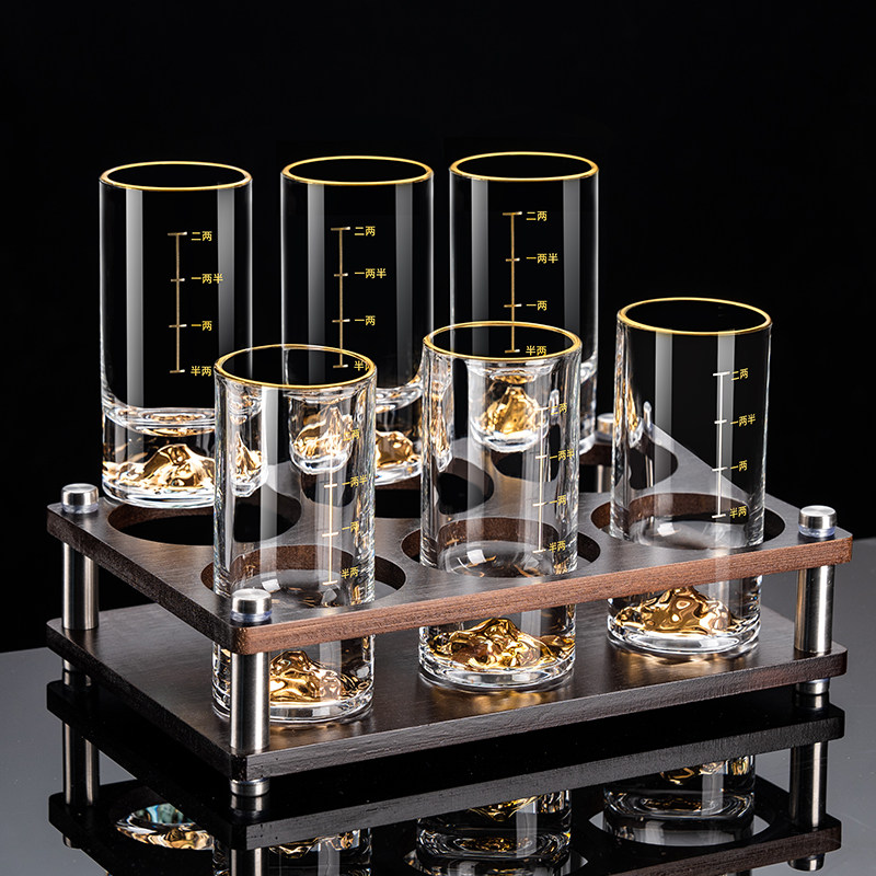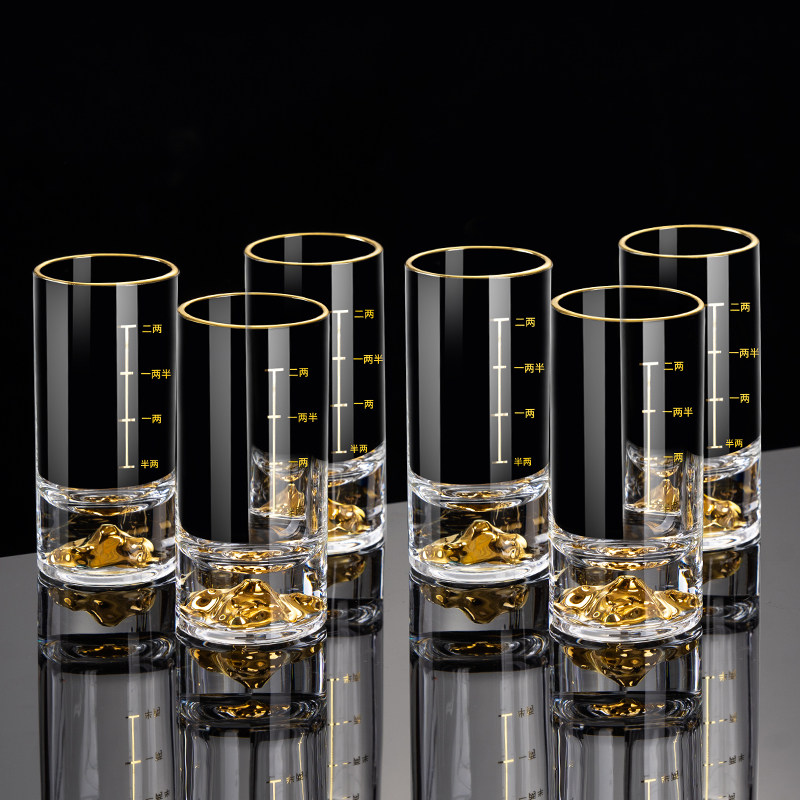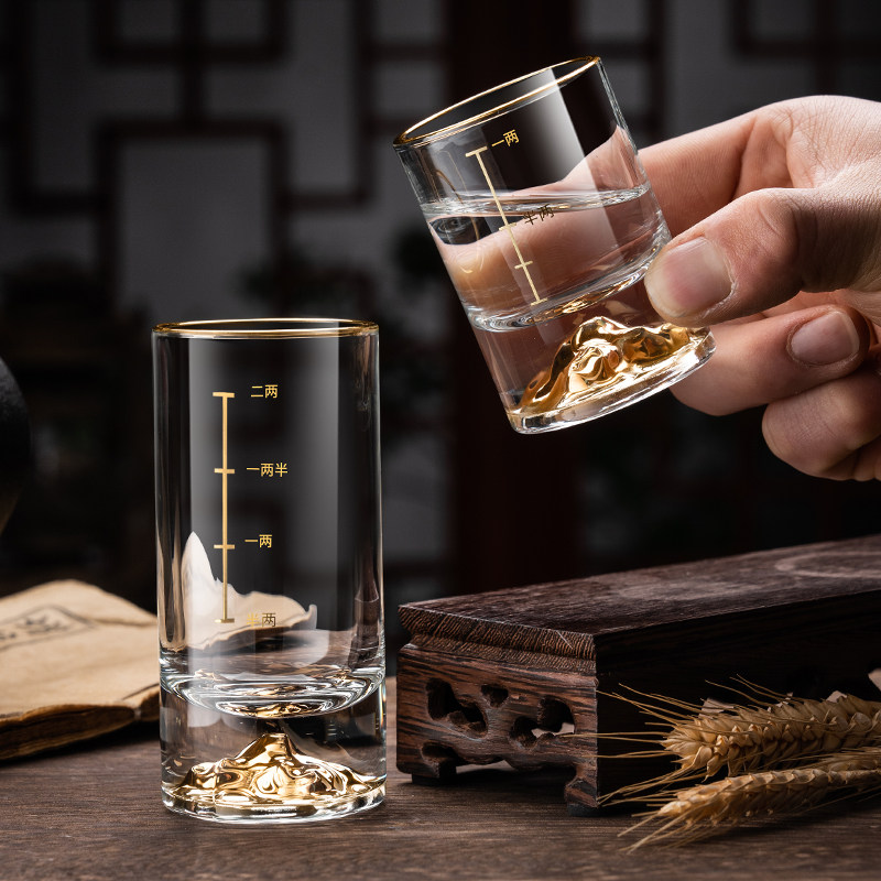 高档金山二两杯白酒杯家用水晶玻璃一两烈酒杯酒具套装中式带刻度