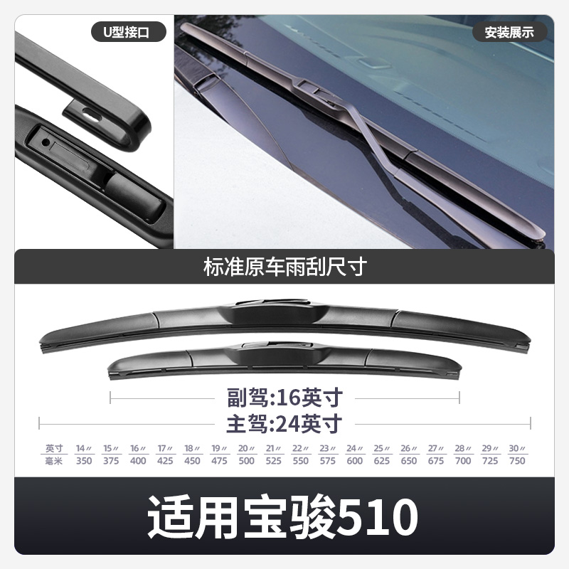 宝骏510雨刮器无骨静音原装原厂专用胶条17款配件宝俊510前雨刷片