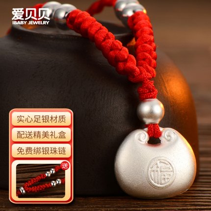爱贝贝实心小胖福吊坠宝宝长命锁足银婴儿银锁小孩儿童如意平安锁