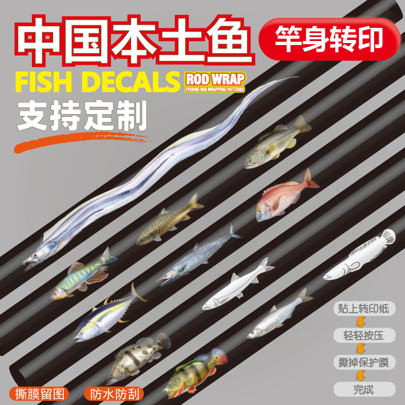 鱼竿图形贴翘嘴鳜鱼金枪鱼军鱼转印贴竿贴竿身印字印图DIY路亚竿