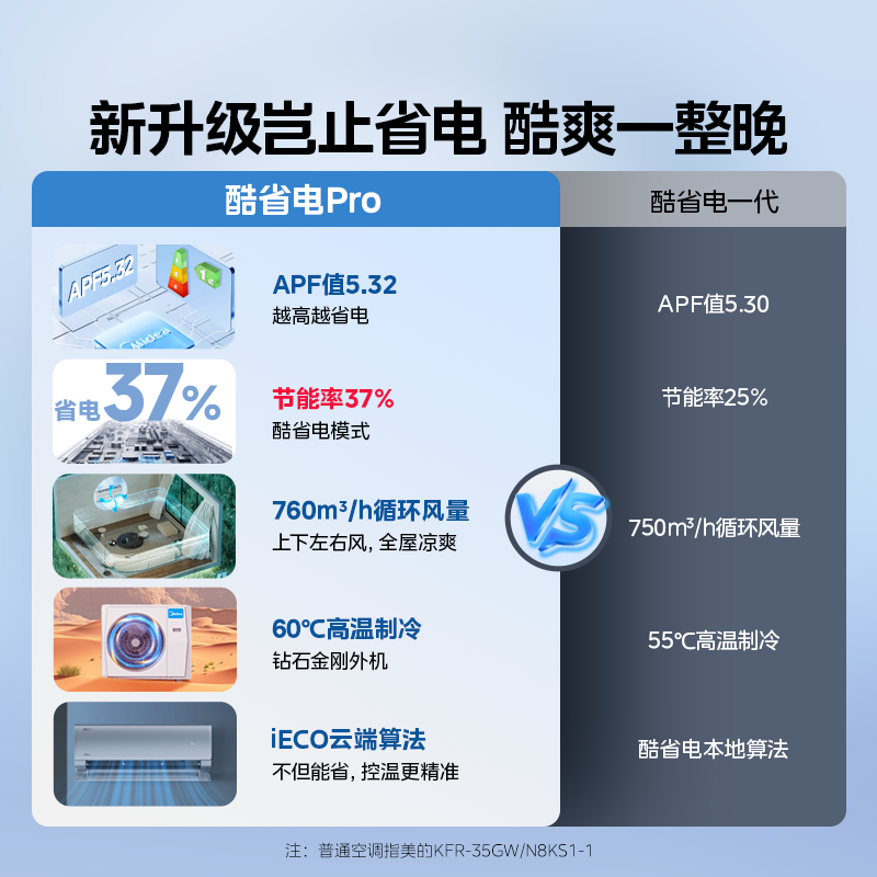 美的空调官方正品一级家用1匹1.5匹卧室变频冷暖壁挂机酷省电Pro