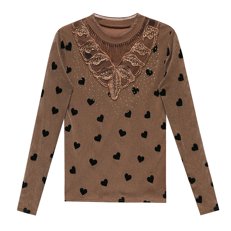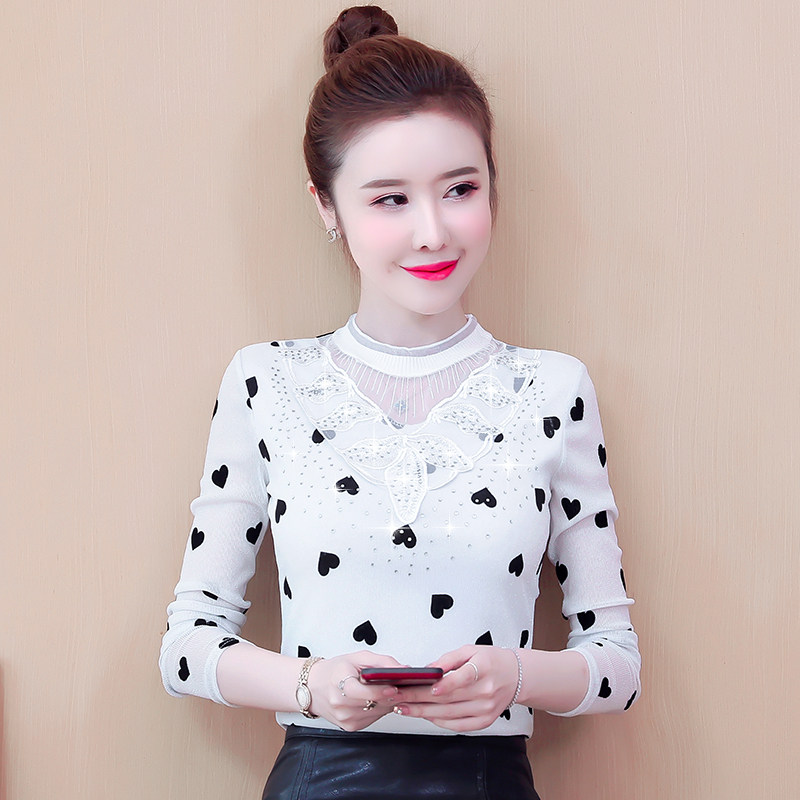 小衫秋冬印花洋气蕾丝衫打底衫