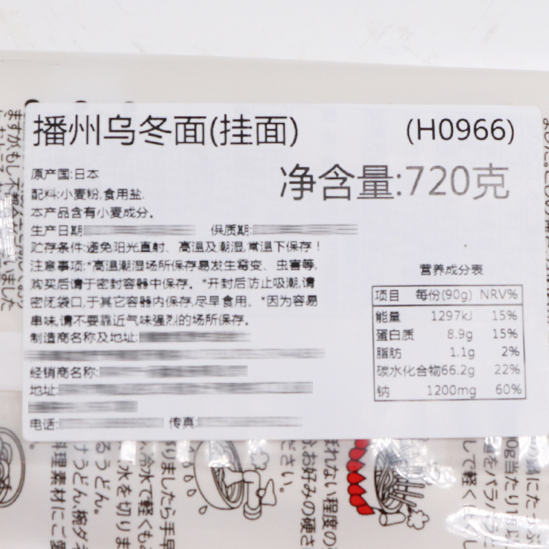 日本面条播州乌冬面原装进口挂面待煮素面冷面方便速食面条720g
