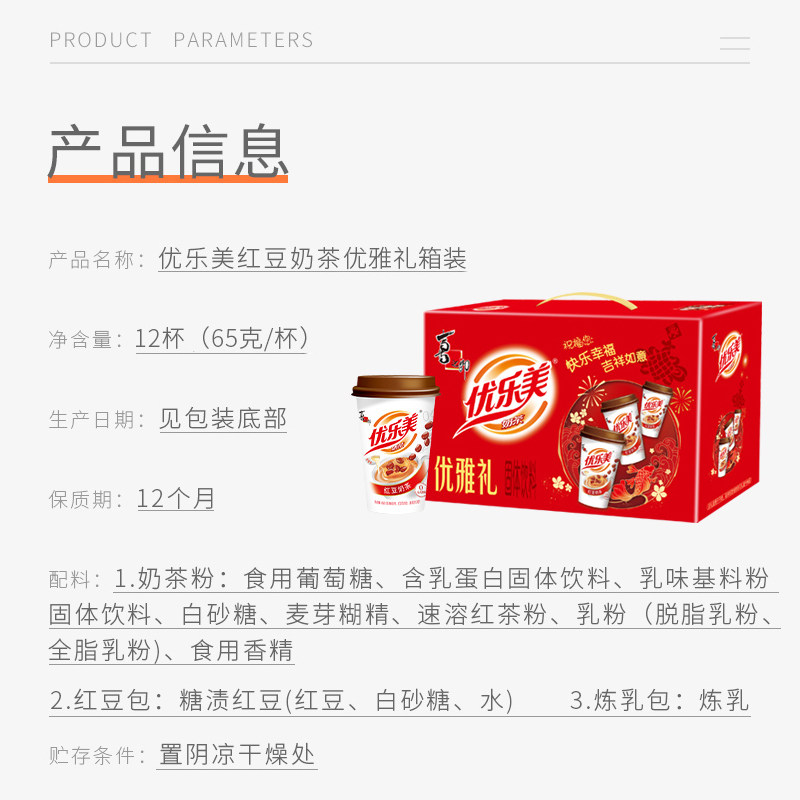 优乐美红豆奶茶杯装礼盒65g*12杯速溶奶茶粉冲泡饮品冲饮早餐热饮