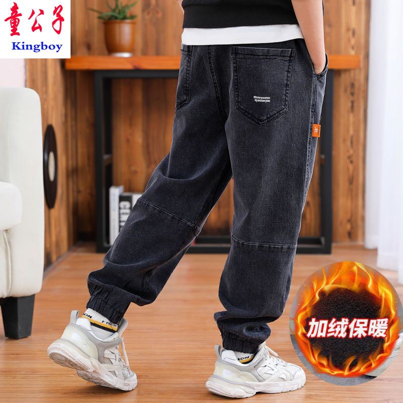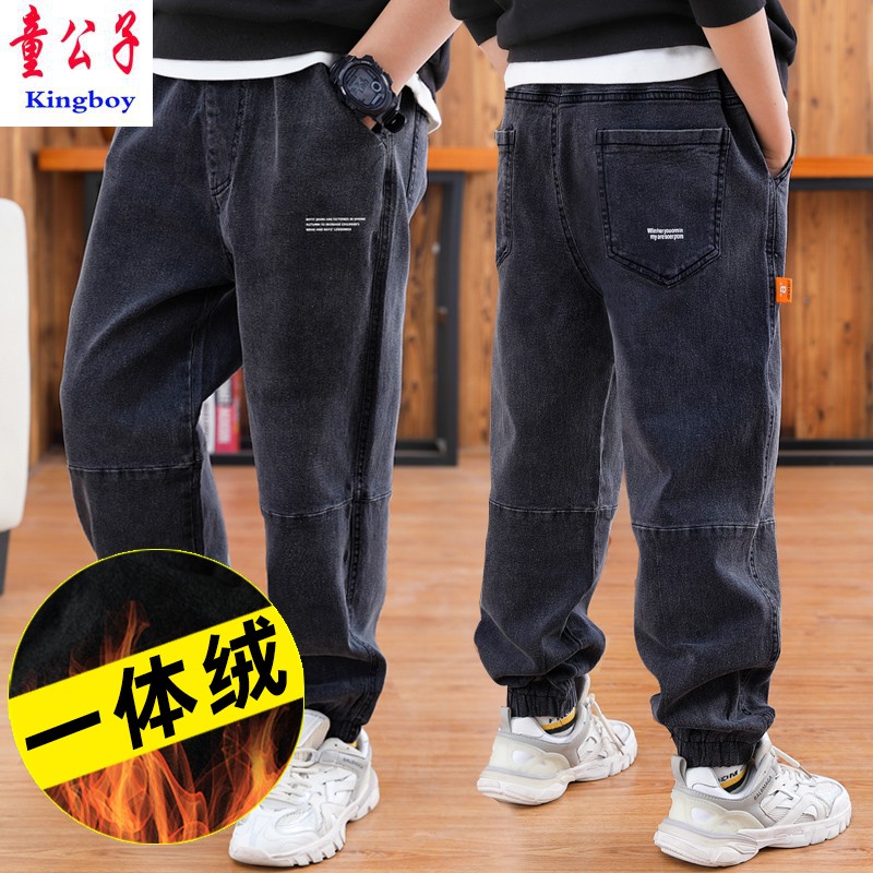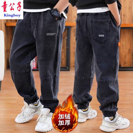 男童裤子一体绒秋冬装百搭儿童牛仔裤帅气保暖韩版束脚长裤中大童