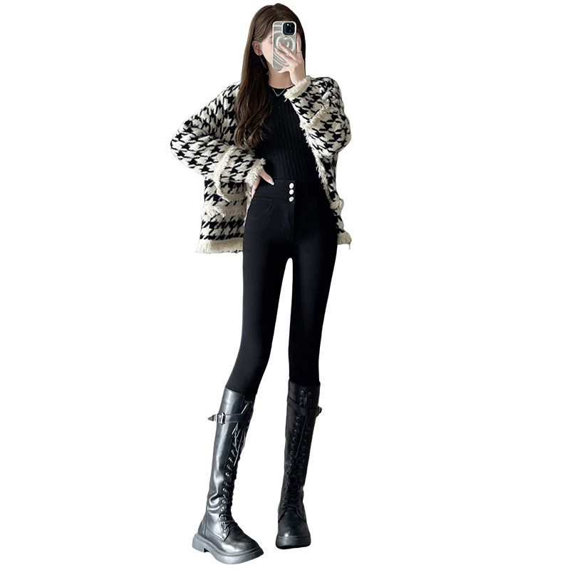 打底裤女外穿秋冬季小脚显瘦紧身弹力黑色铅笔高腰加绒小黑魔术裤