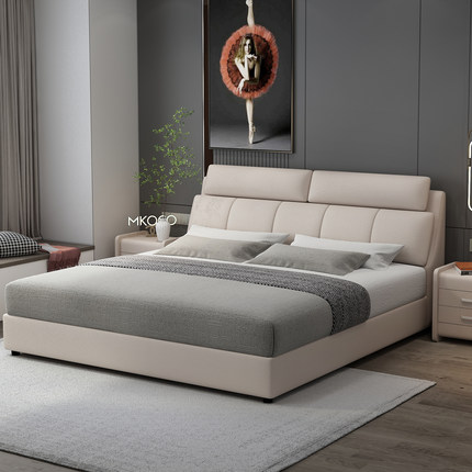 金可儿真皮床双人床现代轻奢婚床2米x2米主卧室大床高端大气家用