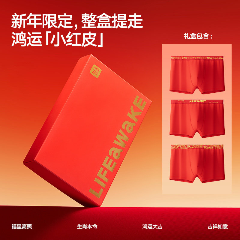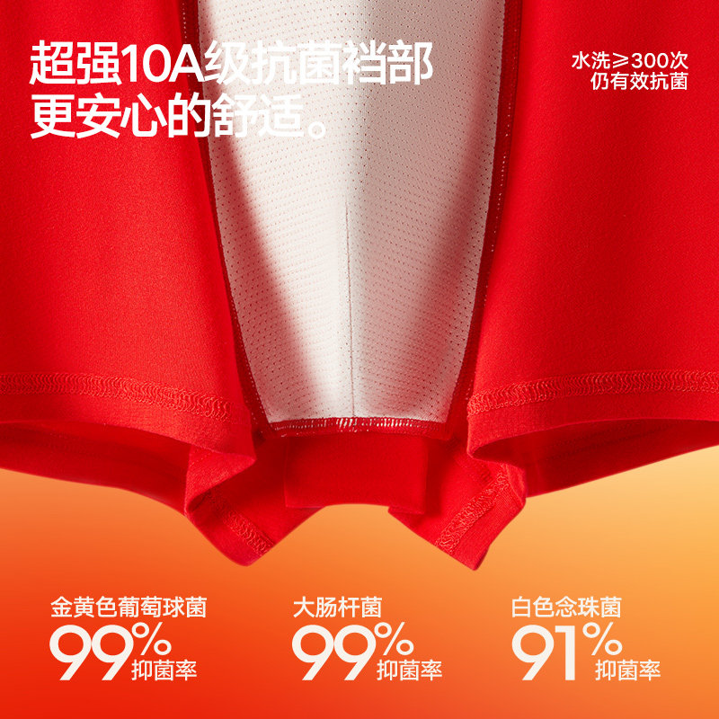 海澜之家男士红色内裤本命年10A抗菌裆平角四角短裤结婚新年礼盒