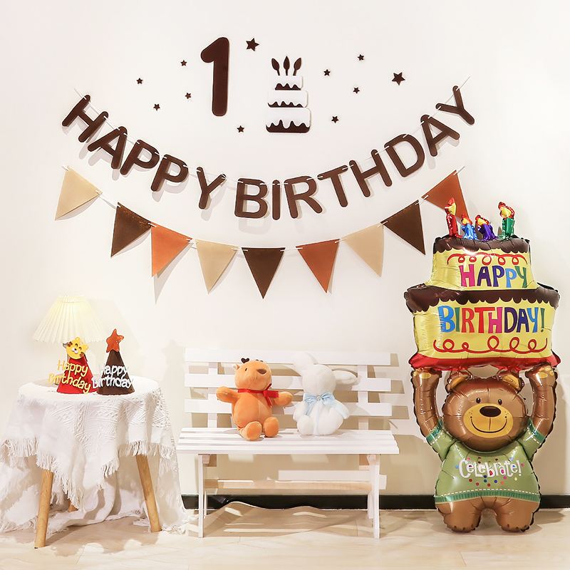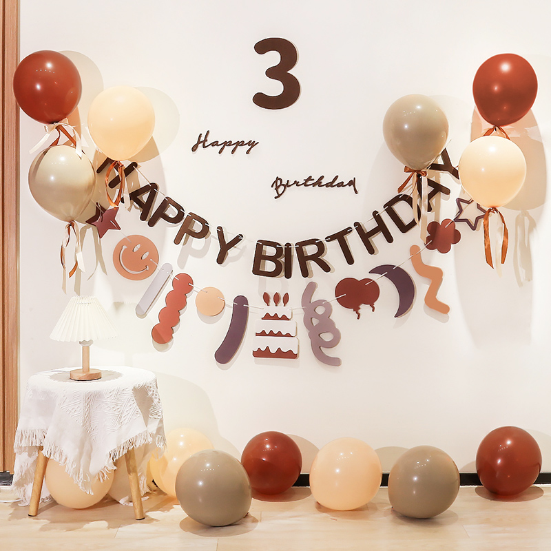 ins森系复古儿童1周岁宝宝生日布置气球装饰品背景墙场景拍照道具