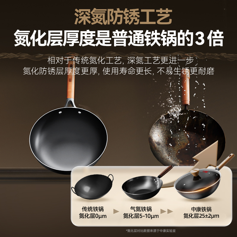 中康大肚锅铁锅精铁无涂层小铁锅氮化防锈一人食炒菜锅电磁炉燃气