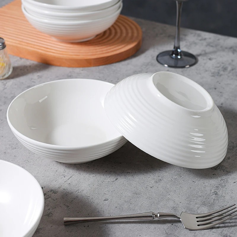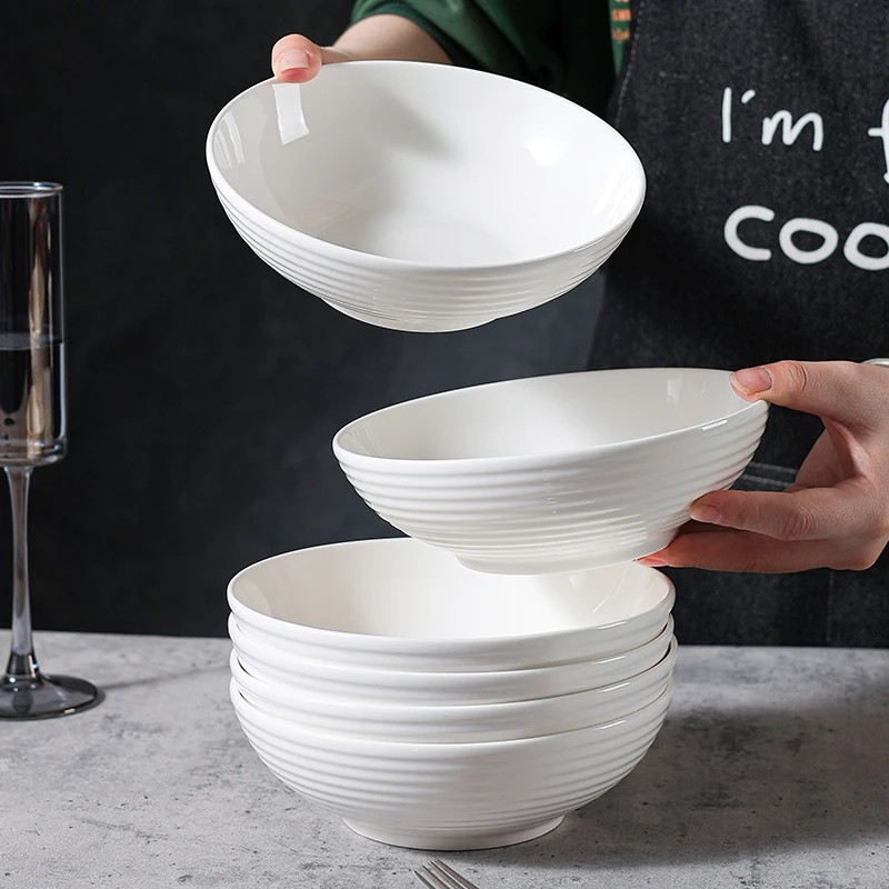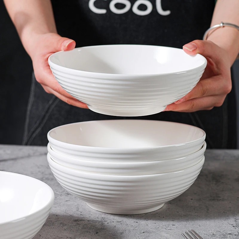 7英寸纯白横纹碗陶瓷4只装牛肉面餐具套装碗家用大碗创意商用简约
