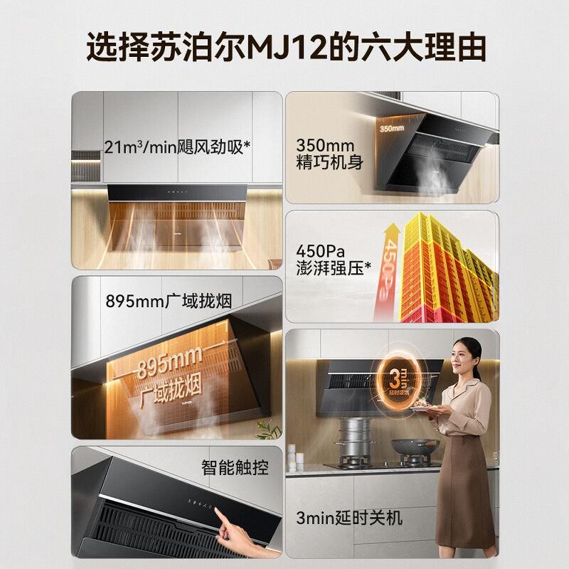 苏泊尔MJ12油烟机燃气灶组合套装侧吸式大吸力烟灶两件套装自清洁