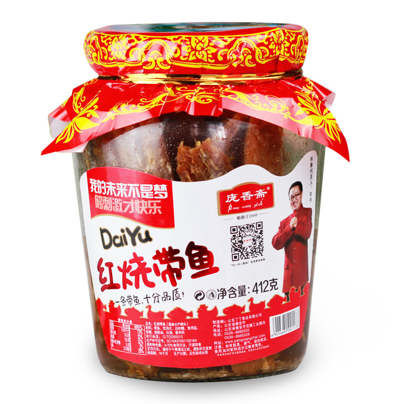庞香斋五香带鱼瓦罐带鱼罐头412g*瓶即食海鲜红烧带鱼肉下饭菜