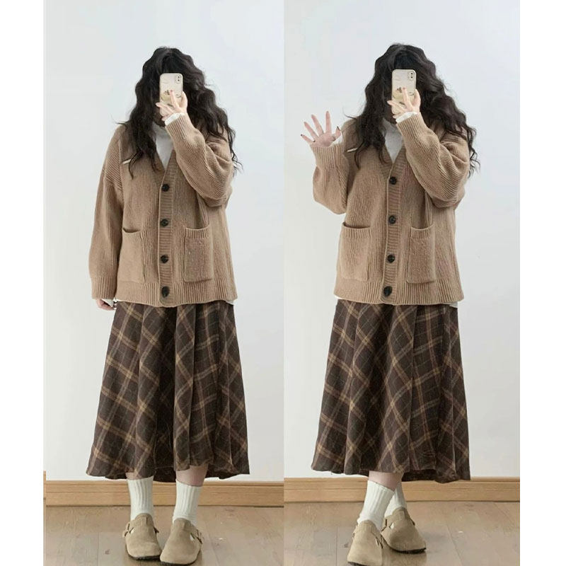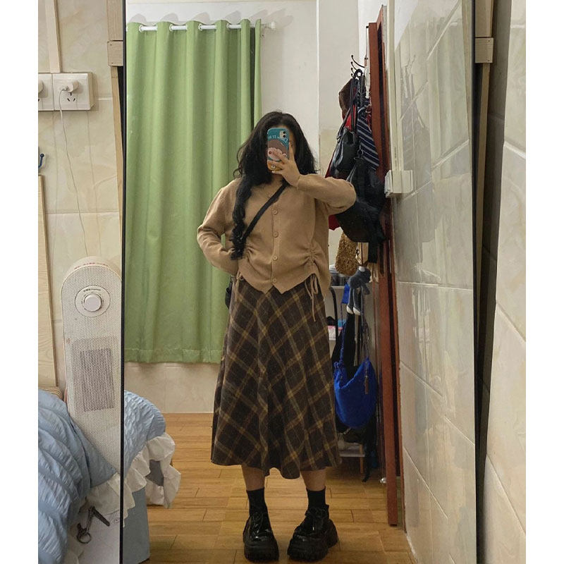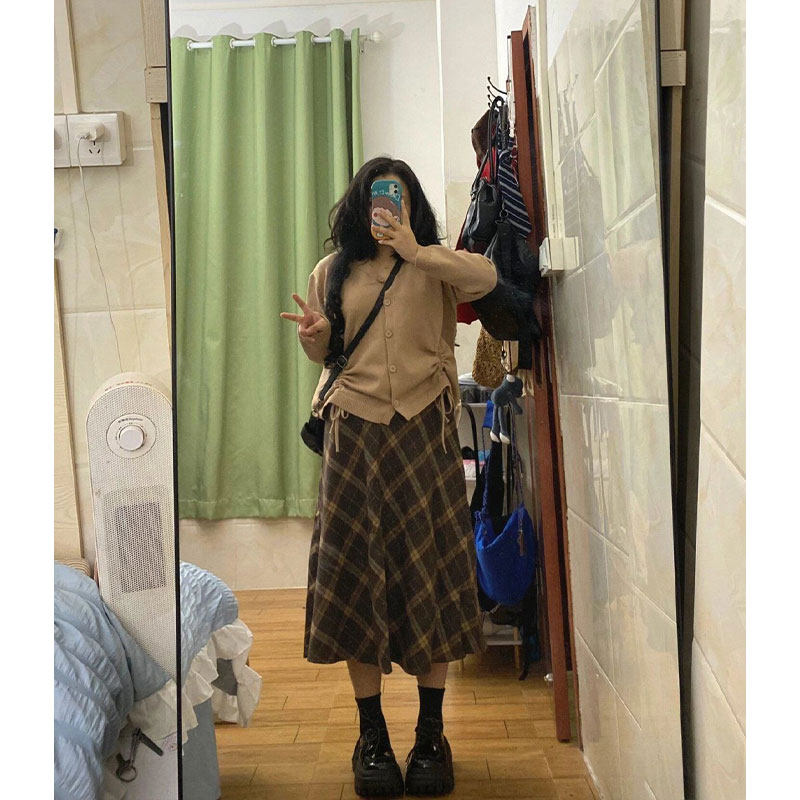 2-300斤胖mm大码女装秋冬美拉德穿搭格纹半身裙高腰遮胯显瘦A字裙