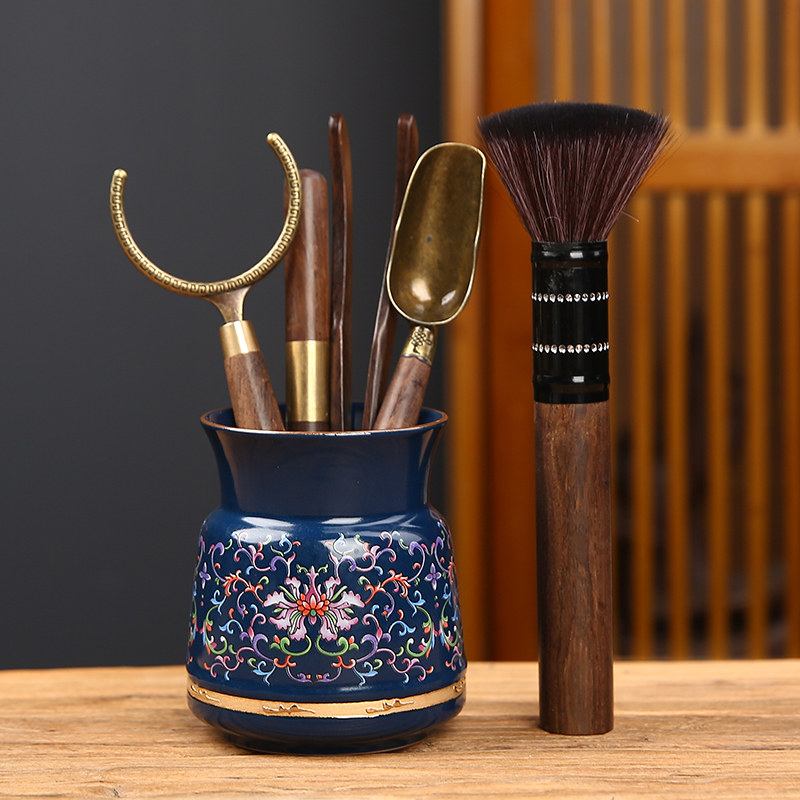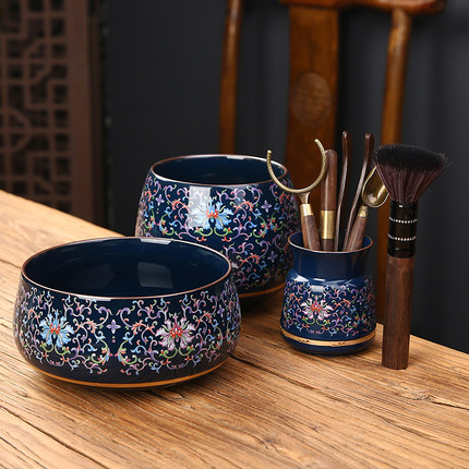 珐琅彩茶渣缸茶洗茶道六君子套装