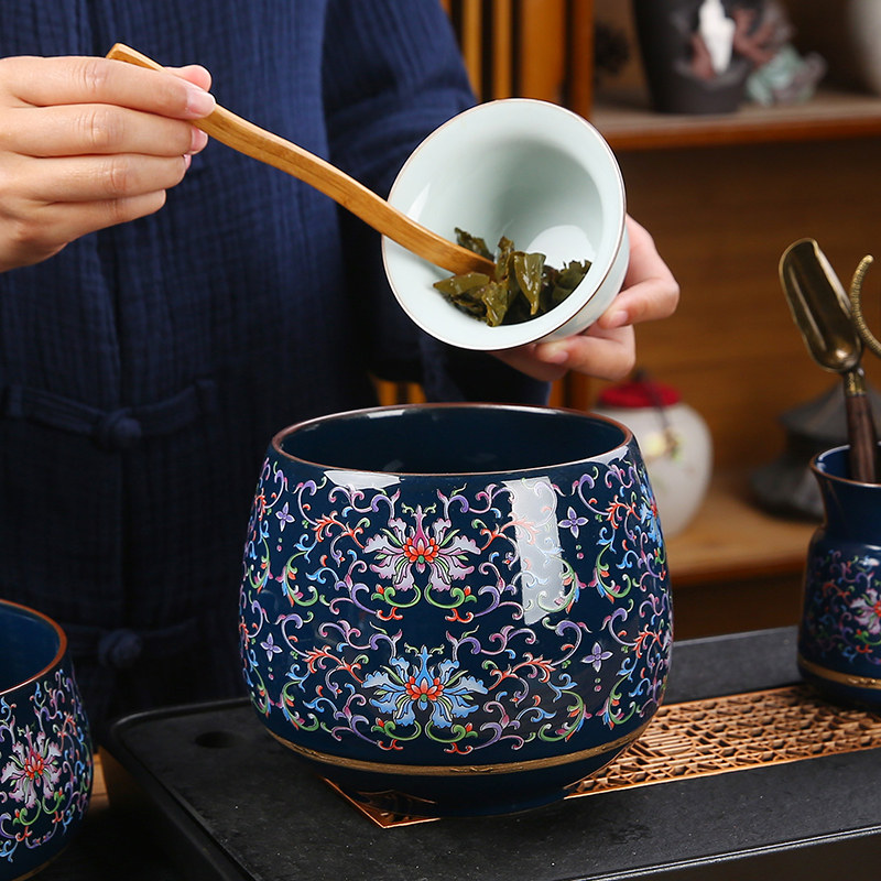 珐琅彩茶渣缸大容量茶洗缸陶瓷茶道六君子套装轻奢高端茶水废水缸