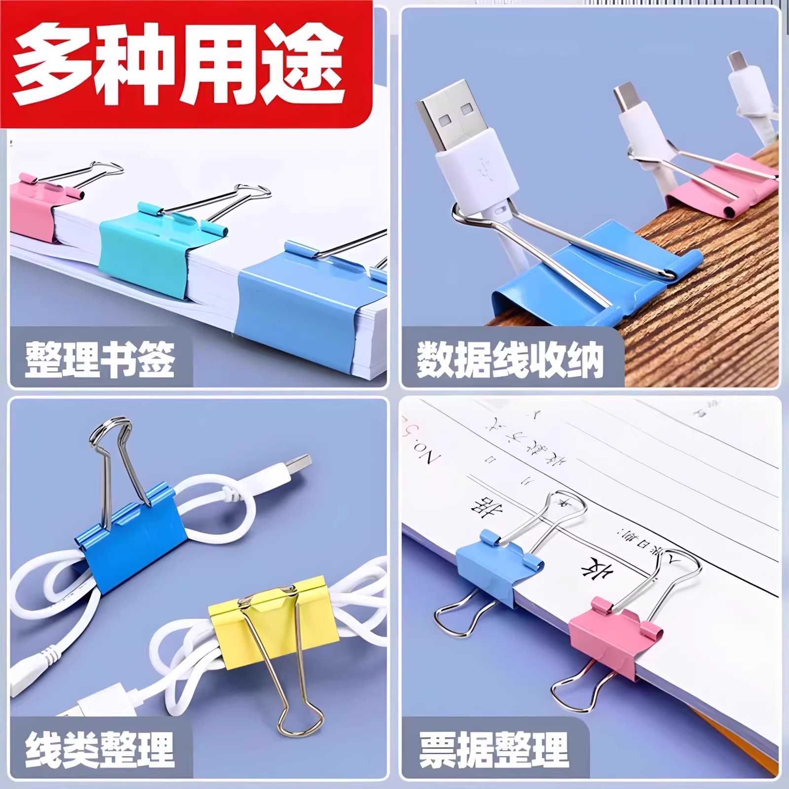 彩色长尾夹燕尾夹夹子办公文具大号19mm 25mm彩色金属文件夹子票夹多功能试卷夹书夹子凤尾夹办公用品职场