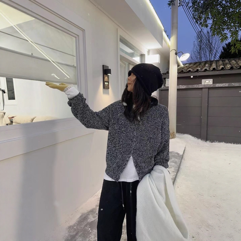 复古慵懒风毛衣针织开衫女外套