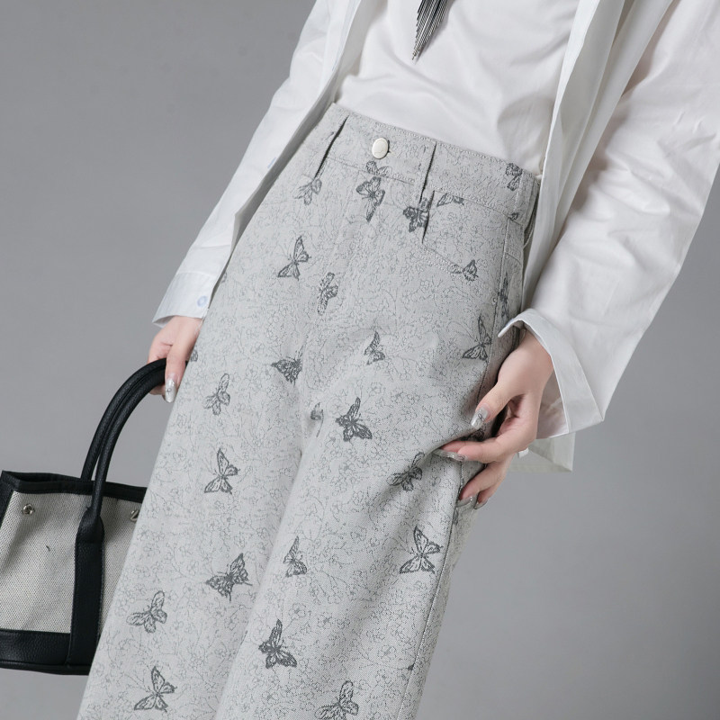 梦舒雅新款印花软牛仔阔腿裤女