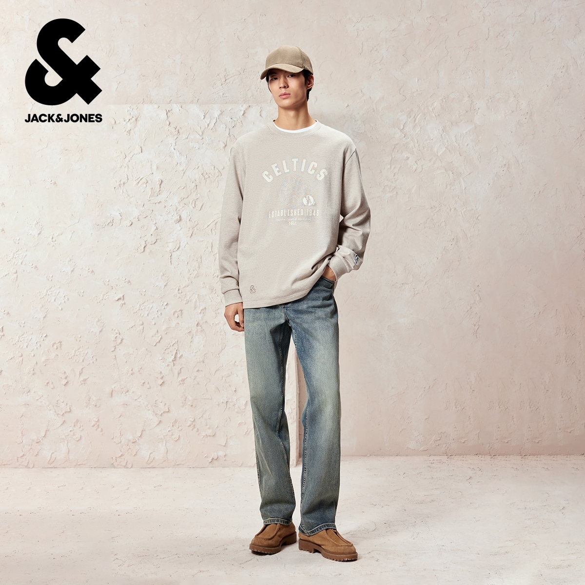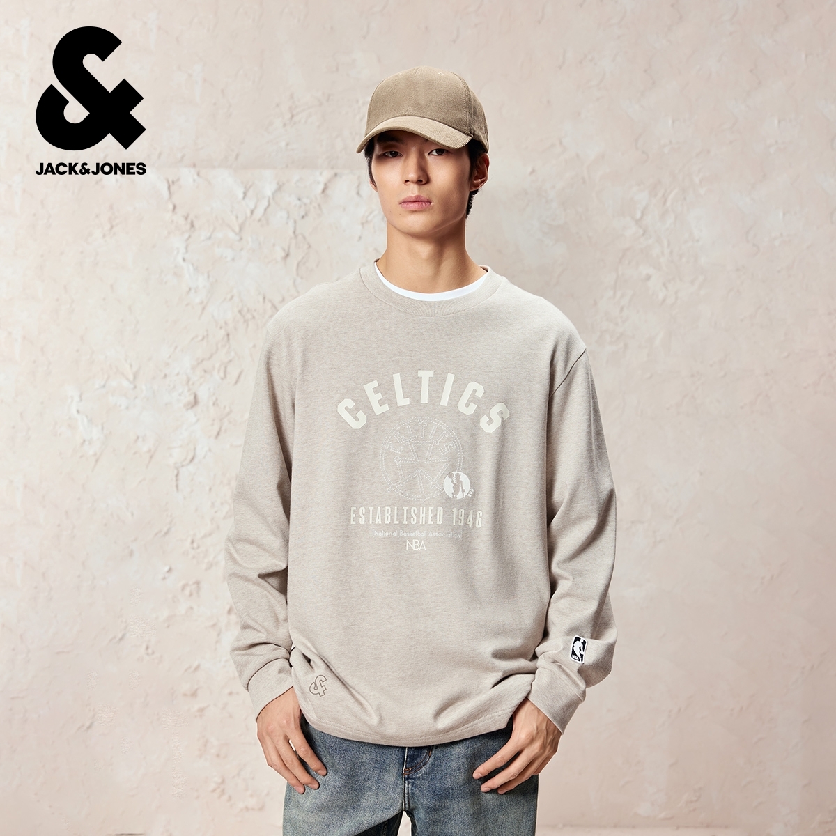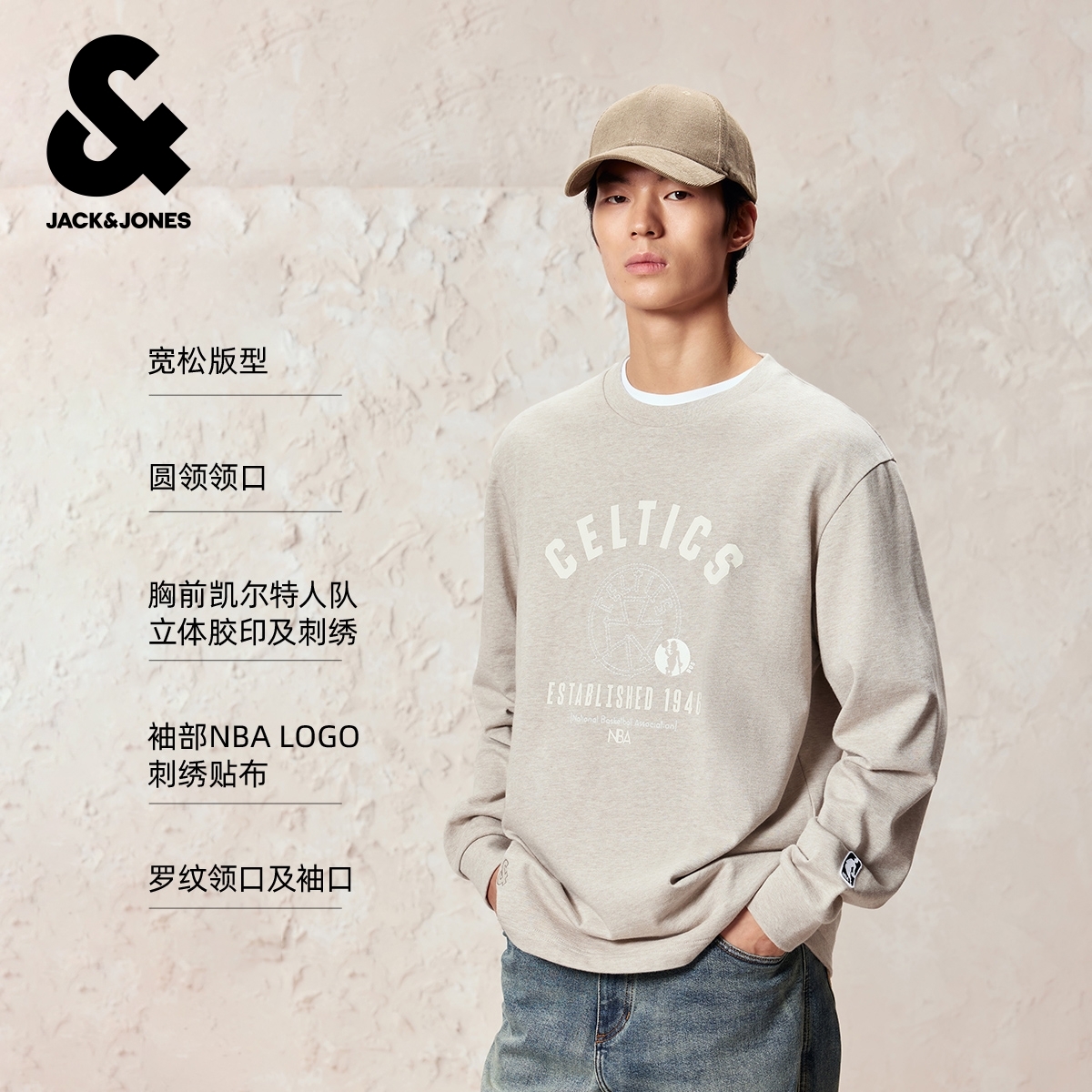杰克琼斯男装秋季T恤2025年新款NBA联名圆领字母胶印长袖上衣