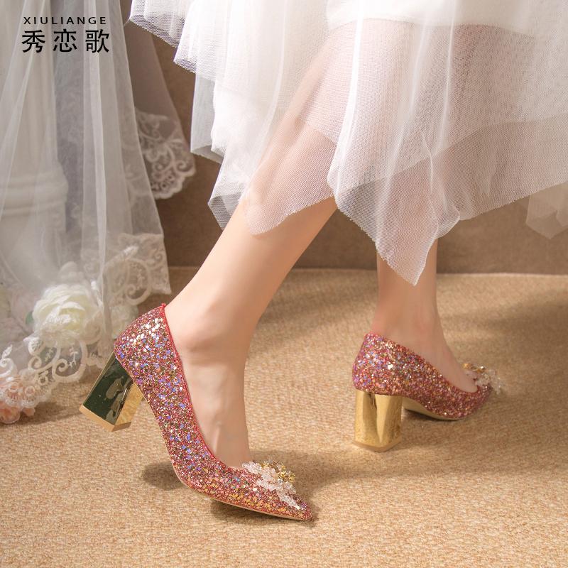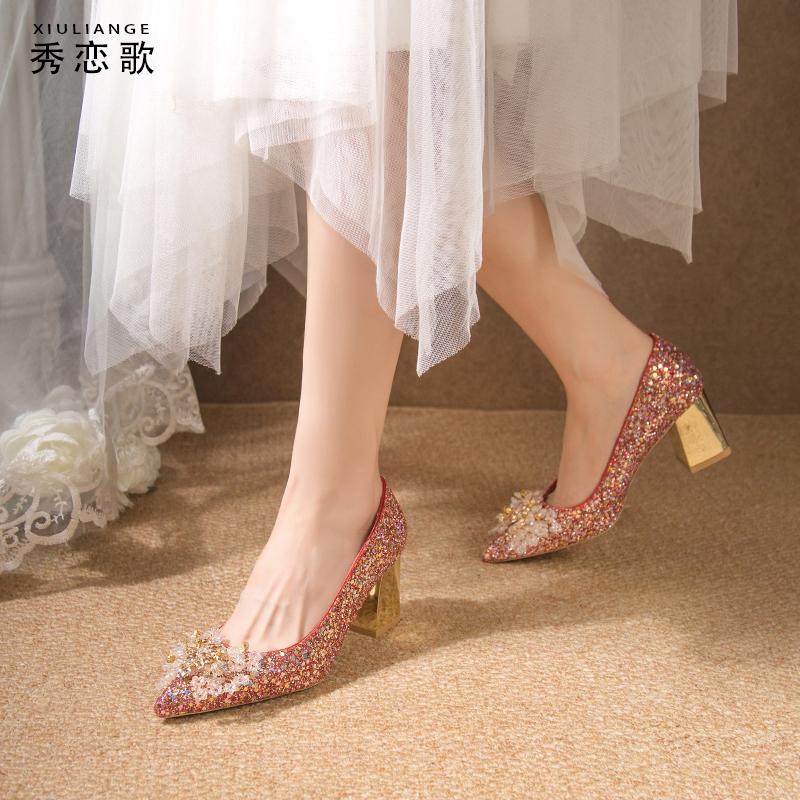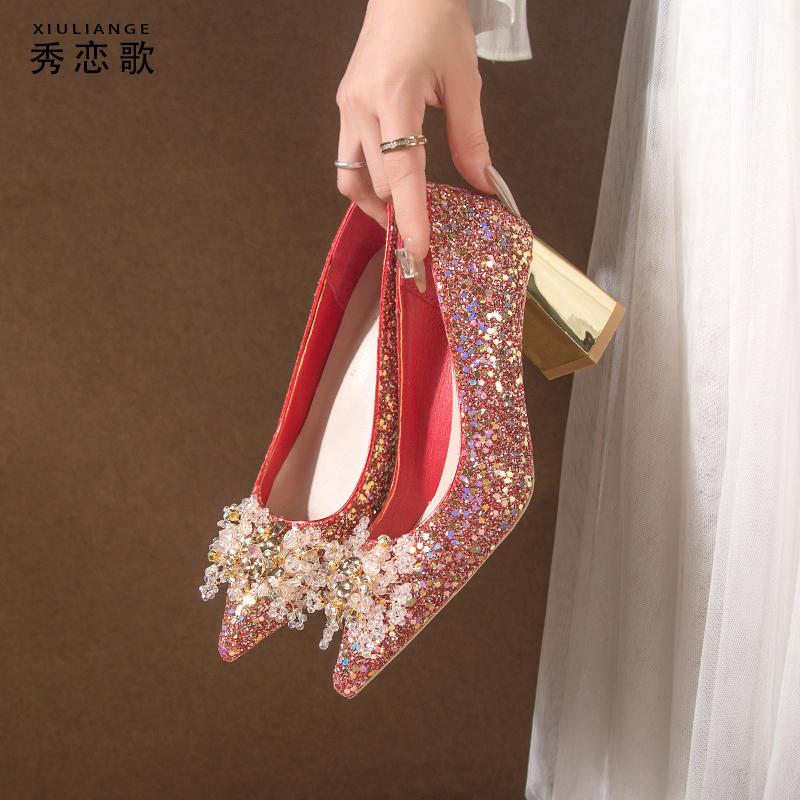 小众新娘鞋2025新款法式婚鞋主婚纱两穿粗跟优雅不累脚红色高跟鞋