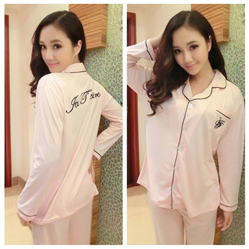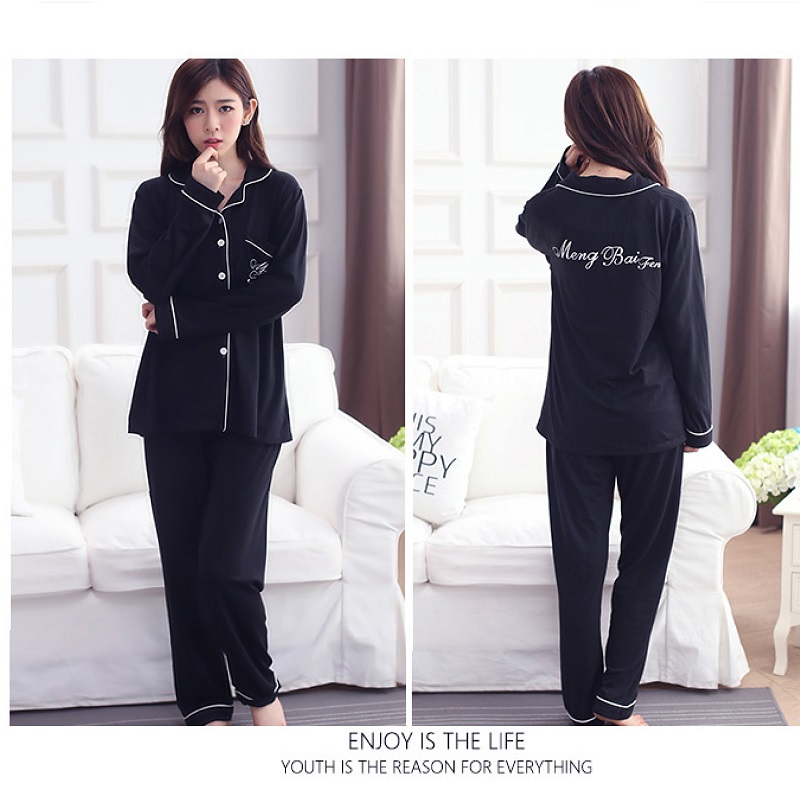 纯棉质女套装休闲长袖开襟家居服