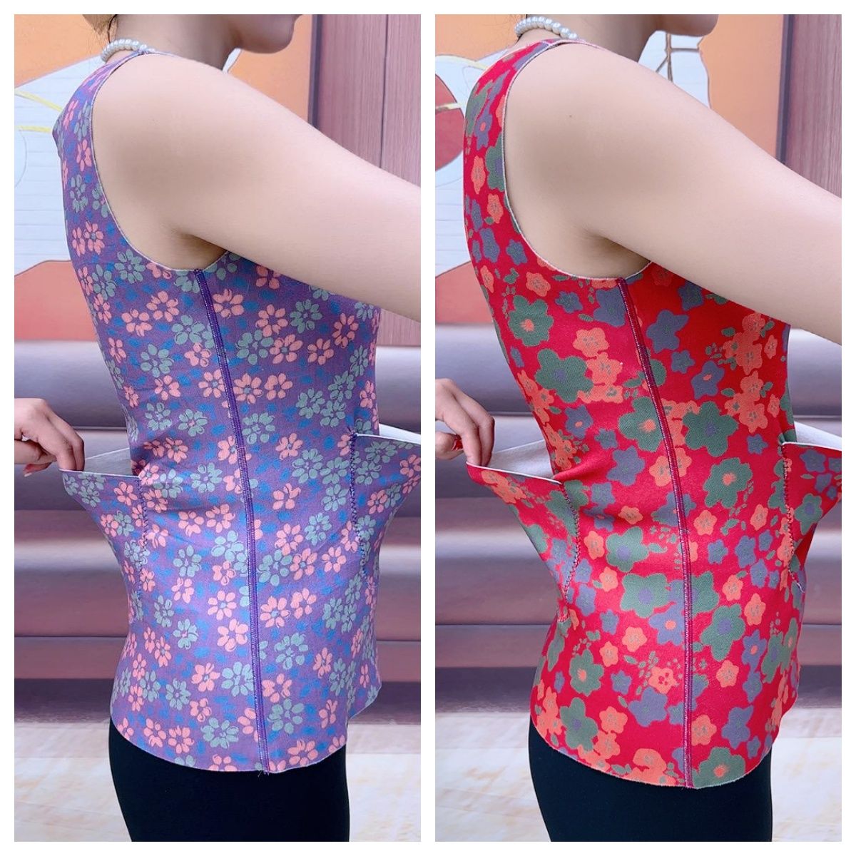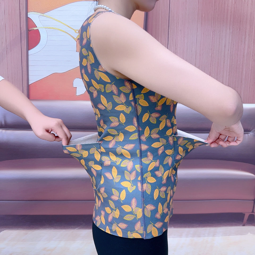 德绒保暖背心双兜秋冬女圆领穿内衣暖宝宝发热腰腹无袖妈妈打底衫
