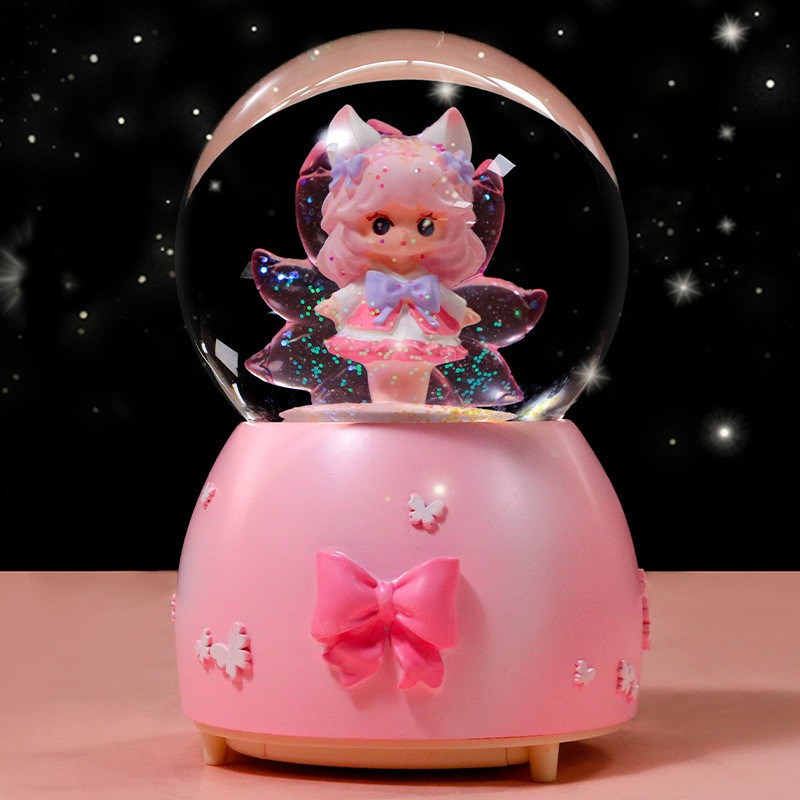 狐仙玫瑰水晶球送女孩发光音乐盒