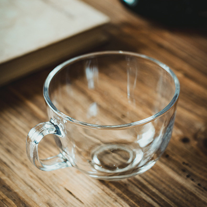 吉田成器透明玻璃杯早餐杯咖啡杯马克杯带手柄玻璃杯子大肚麦片杯